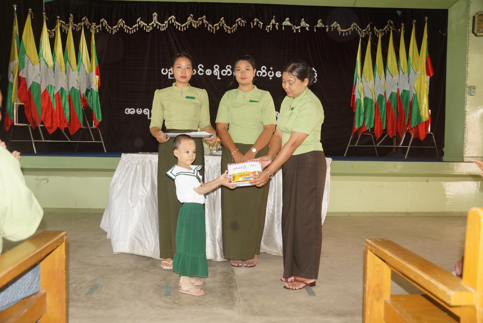အခမ်းအနားတွင် အမရပူရမြို့နယ် အထွေထွေအုပ်ချုပ်ရေးဦးစီးဌာန၊ မြို့နယ်အုပ်ချုပ်ရေးမှူး ဦးစိုးညွန့်ဦးက အဖွင့်အမှာစကား ပြောကြားခဲ့သည်။ ထို့နောက် မိသားစုထိမ်းသိမ်းရေးနှင့် စည်းကမ်းထိန်းသိမ်းရေးကော်မတီဥက္ကဋ္ဌ ဒေါ်မေဝါကိုကိုက ပညာသင်ထောက်ပံ့ကြေးပေးအပ်မှုနှင့် ပတ်သက်၍ ရှင်းလင်းပြောကြားခဲ့သည်။ ဆက်လက်ပြီး မြို့နယ်အုပ်ချုပ်ရေးမှူးဦးစိုးညွန့်ဦးနှင့် မိသားစုစည်းရုံးရေးနှင့် စည်ကမ်းထိန်းသိမ်းရေးကော်မတီဥက္ကဋ္ဌ ဒေါ်မေဝါကိုကို ဒုတိယမြို့နယ်အုပ်ချုပ်ရေးမှူး ဦးသိန်းတိုးဝင်း ဒုတိယဦးစီးမှူး ဦးနေလင်းအောင်နှင့် ဒေါ်ခင်သန္တာဆွေတို့က ပညာသင်ကြားမည့် ကလေးများကို ထောက်ပံ့ငွေနှင့် ကျောင်းသုံးစာအုပ်နှင့် စာရေးကရိယာများကို ထောက်ပံ့ပေးအပ်ခဲ့သည်။
