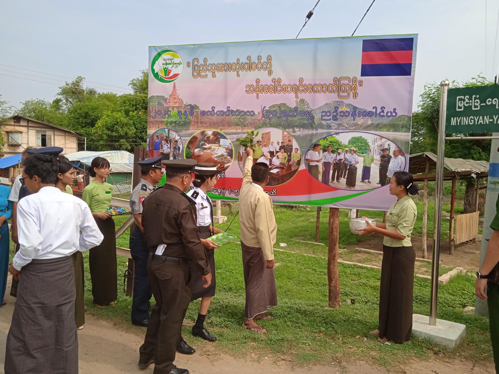 ၂၀၂၄ ခုနှစ် အောက်တိုဘာ (၁)ရက်နေ့မှ (၁၅)ရက်နေ့အထိ ကောက်ယူဆောင်ရွက်မည့် လူဦးရေနှင့်အိမ်အကြောင်းအရာ သန်းခေါင်စာရင်း ကောက်ယူခြင်းလုပ်ငန်းများကို မြို့နယ်အတွင်းရှိ ပြည်သူများ ကျယ်ကျယ်/ ပြန့်ပြန့် သိရှိနိုင်စေရန်နှင့် ပူးပေါင်းပါဝင်နိုင်ရေးအတွက် အသိပညာပေး နှိုးဆော်ခြင်းဖြစ်သည့် မြေစိုက်ပိုစတာအား စိုက်ထူဆောင်ရွက်ခြင်းဖြစ်ပြီး မြို့နယ်စီမံအုပ်ချုပ်ရေးအဖွဲ့ ဥက္ကဋ္ဌ ဦးအေးခိုင်၊ မြို့နယ်စီမံအုပ်ချုပ်ရေးအဖွဲ့ အဖွဲ့ဝင်(၁) ဗိုလ်မှူး မြတ်သီဟမင်း ၊ မြို့နယ်ရဲတပ်ဖွဲ့မှူးရုံးမှ ရဲမှူးဌေးဝင်း၊ လူဝင်မှုကြီးကြပ်ရေးနှင့်ပြည်သူ့အင်အားဝန်ကြီးဌာန မြို့နယ်ဦးစီးမှူး ဦးအောင်ကျော်မိုးတို့က ဖဲကြိုးဖြတ် ဖွင့်လှစ်ပေးကြပြီး အမွှေးနံ့သာရည်များ ပက်ဖျန်းပေးခဲ့သည်။ ဆက်လက်၍ သန်းခေါင်စာရင်းကောက်ယူရေးကော်မတီဥက္ကဋ္ဌနှင့် တာဝန်ရှိသူများက “ပြည်သူအားလုံးပါဝင်လို့ သန်းခေါင်စာရင်းကောက်ကြစို့” ပိုစတာများကို တာဝန်ရှိသူများထံသို့ အသီးသီးပေးအပ်ခဲ့ကြရာ မြို့နယ်လူဝင်မှုကြီးကြပ်ရေးနှင့်ပြည်သူ့အင်အားဝန်ကြီးဌာနဝန်ထမ်းများက သန်းခေါင်စာရင်းကောက် ယူခြင်းအတွက် အသိပညာပေး လက်ကမ်းစာစောင်များကို (အခမဲ့) ဖြန့်ဝေပေးခဲ့ပြီး အခမ်းအနားသို့ တက်ရောက်လာသူများနှင့် အမှတ်တရ စုပေါင်းမှတ်တမ်းဓါတ်ပုံရိုက်ကူးခဲ့ကြောင်း သိရသည်။ အဆိုပါ အခမ်းအနားသို့ မြို့နယ်သန်းခေါင်စာရင်းကောက်ယူရေးကော်မတီဥက္ကဋ္ဌနှင့် အဖွဲ့ဝင်များ၊ မြို့နယ်လူဝင်မှုကြီးကြပ်ရေးနှင့်ပြည်သူ့အင်အားဝန်ကြီးဌာနမှ ဝန်ထမ်းများ ၊ မြို့နယ်အဆင့်ဌာနဆိုင်ရာ တာဝန်ရှိသူများ ၊ အမျိုးသမီးရေးရာအဖွဲ့ဝင်များ ၊ မိခင်နှင့်ကလေးစောင့်ရှောက်ရေးအသင်းအဖွဲ့ဝင်များ ၊ ရပ်ကွက်အုပ်ချုပ်ရေးမှူးများနှင့် ပြည်သူများ တက်ရောက်ခဲ့ကြကြောင်း သိရသည်။