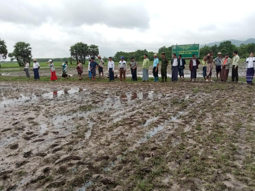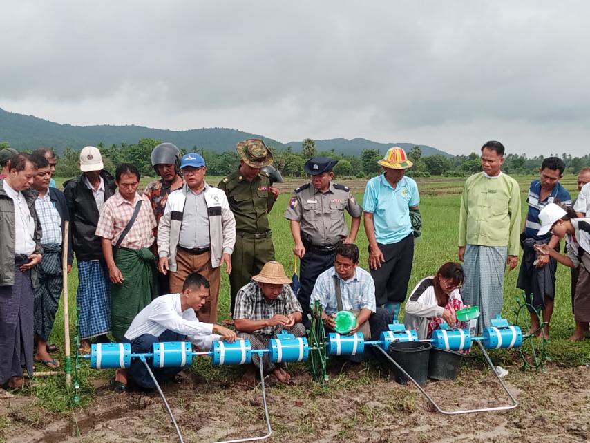 အဆိုပါ မိုးစပါးမျိုးစေ့ချကိရိယာဖြင့် စိုက်ပျိုးခြင်းကွင်းသရုပ်ပြပွဲသို့ မြို့နယ်စီမံအုပ်ချုပ်ရေးအဖွဲ့ဥက္ကဋ္ဌ ဦးကျော်စိုးဦးနှင့် အဖွဲ့ဝင်များ၊ မြို့နယ် စိုက်ပျိုးထုတ်လုပ်မှု တိုးတက်မြင့်မားရေးအဖွဲ့၊ ရပ်ကွက် ကျေးရွာအုပ်စုမှ အုပ်ချုပ်ရေးမှူးများနှင့် တောင်သူများ၊ ဌာနဆိုင်ရာတာဝန်ရှိသူ များ စုစုပေါင်း (၅၄) ဦးတို့ တက်ရောက်ခဲ့ကြသည်။