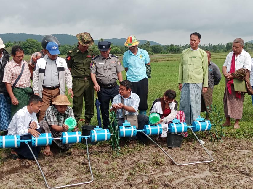 ကွင်းသရုပ်ပြပွဲတွင် မြို့နယ်စီမံအုပ်ချုပ်ရေးအဖွဲ့ဥက္ကဋ္ဌက ယခုနှစ် မိုးရာသီတွင် ကြဲခင်းစနစ်ဖြင့် စိုက်ပျိူးခြင်းအစား ယခုကဲ့သို့ မျိုးစေ့ချကိရိယာများဖြင့် အစားထိုးစိုက်ပျိုးကြရန် မွန်ပြည်နယ် အစိုးရအဖွဲ့မှလည်း တောင်သူများအတွက် မျိုးစေ့ချကိရိယာ (၆၀) ခုအား ထောက်ပံ ပေးထားပြီး ဖြစ်ရာ တောင်သူများ လွယ်ကူစွာ စိုက်ပျိုးနိုင်ပြီးဖြစ်ကြောင်း ရှင်းလင်းပြောကြားပြီး မြို့နယ်စိုက်ပျိုးရေးဦးစီးဌာနမှ ဦးစီးအရာရှိ ဦးလှတင်မောင်က မျိုးစေ့ချကိရိယာဖြင့် စိုက်ပျိုးခြင်း၏ အားသာချက်များနှင့် ရှောင်ရန် ဆောင်ရန်အချက်များအား ရှင်းလင်းပြောကြားခဲ့ကြောင်း သိရသည်။