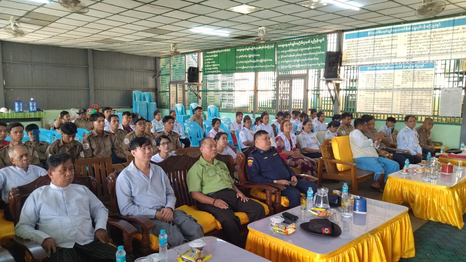 ရှေးဦးစွာ မြို့နယ်စီမံအုပ်ချုပ်ရေးအဖွဲ့ဥက္ကဋ္ဌ မြို့နယ်ကြက်ခြေနီအသင်းနာယက ဦးမင်းအောင်က အဖွင့်အမှာစကားပြောကြားပြီး မြို့နယ်ကြက်ခြေနီအသင်းခွဲဥက္ကဋ္ဌ ဦးရဲမြင့်လှိုင်က ကြက်ခြေနီ သင်တန်းဖွင့်လှစ်ရခြင်းအကြောင်းပြောကြားခဲ့သည်။ ထို့နောက် ဒုတိယခရိုင်တပ်ဖွဲ့မှူး ဦးသက်နိုင်က သင်တန်းဆင်းအမှာစကားပြောကြားရာတွင် ၂ဝ၂၄ ခုနှစ်အတွက် ကမ္ဘာ့ကြက်ခြေနီနေ့ဆောင်ပုဒ်မှာ “လူသားချင်း စာနာမှု အစဉ်ရှင်သန်ရေး၊ ဝိုင်းဝန်းကြိုးပမ်းဆောင်ရွက်ပေး” ဖြစ်၍ ယနေ့ကမ္ဘာပေါ်တွင် ရင်ဆိုင်ကြုံတွေ့နေရသည့် အရေးပေါ်အခြေအနေများတွင် ကြက်ခြေနီအခြေခံမူ (၇) ချက်မှ လူသားချင်းစာနာထောက်ထားခြင်း ဆိုသည့်အချက်ကို ရပ်ရွာလူထုအားလုံးထံ ပျံ့နှံ့ရောက်ရှိ ဆောင်ရွက်ကြပြီး ကြက်ခြေနီအသင်းသားအားလုံးတို့သည် အရေးပေါ်အခြေအနေကို ကူညီနိုင်ရန် အခြေခံသင်တန်းများ၊ အရေးပေါ်အသက်ကယ်နည်းတို့ကို စနစ်တကျလေ့ကျင့်သင်ထားကြရန်၊ လူသားတိုင်းကိုခွဲခြားမှုမရှိ နှလုံးသားဖြင့်ဖေးမကူညီကြရန် ရှင်းလင်းပြောကြားခဲ့ပြီး မြို့နယ်ကြက်ခြေနီအသင်းခွဲ၏ အကြံပေးဆရာကြီး ဦးစိန်ဝှီးက အမှာစကားပြောကြားခဲ့သည်။