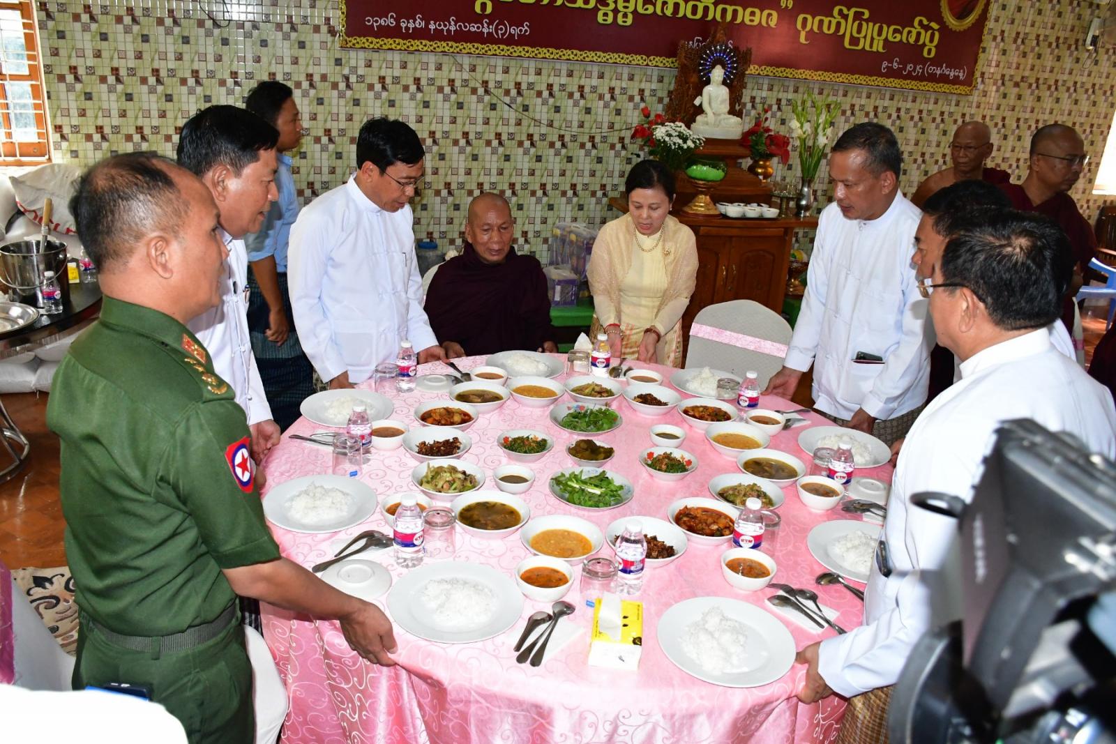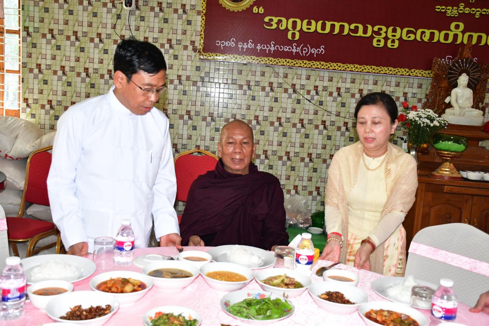 အခမ်းအနားအပြီးတွင် နေပြည်တော်ကောင်စီဥက္ကဋ္ဌ ဦးသန်းထွန်းဦးနှင့် ဇနီး၊ ဒုတိယဝန်ကြီး၊ နေပြည်တော်ကောင်စီဝင်များနှင် ၎င်းတို့၏ ဇနီးတို့က ဆရာတော်၊ သံဃာတော်များအား နေ့ဆွမ်း ဆက်ကပ်လှူဒါန်းခဲ့ကြကြောင်း သိရသည်။