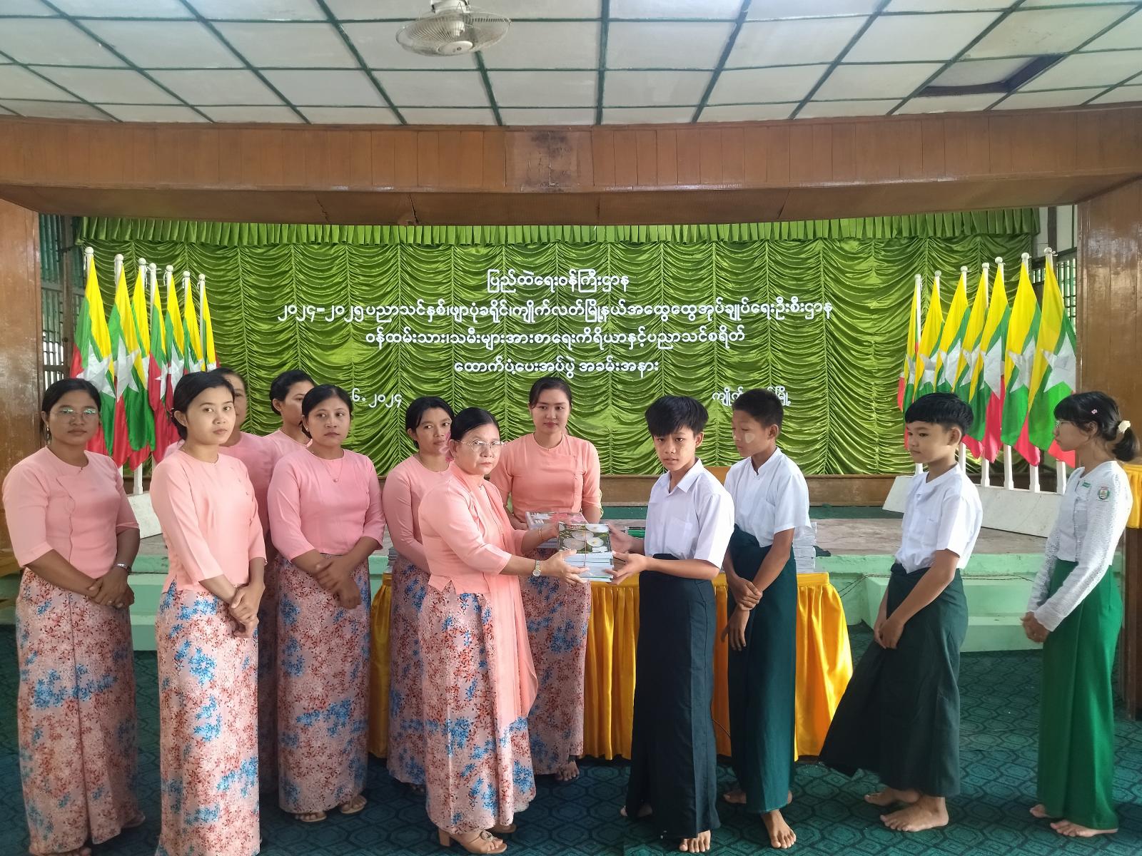 ရှေးဦးစွာ မြို့နယ်စီမံအုပ်ချုပ်ရေးအဖွဲ့ဥက္ကဋ္ဌ မြို့နယ်အုပ်ချုပ်ရေးမှူး ဦးမင်းအောင်က “ပညာရေးဆိုတာဟာ လူ့အဖွဲ့အစည်းတစ်ခုရဲ့ အသိပညာအလေ့အထများ ဓလေ့ထုံးတမ်းများ၊ လူသားတို့၏ရုပ်ပိုင်းဆိုင်ရာအသိပညာနှင့် ကိုယ်ကျင့်တရားဆိုင်ရာစွမ်းရည်များ ဖွံ့ဖြိုးတိုးတက်စေရန်အတွက် စနစ်ကျသောလုပ်ငန်းစဉ်ဖြစ်ကြောင်း ဝန်ထမ်းများ၏ သား၊ သမီးများအား ဗလာစာအုပ်၊ ဘောပင်၊ ခဲတံနှင့် ပညာသင်စရိတ်များ ထောက်ပံ့ပေးရခြင်းဖြစ်ကြောင်း၊ ပညာရေးမှာ ထူးချွန်ထက်မြက်သည့် ပညာတတ်များဖြစ်အောင် ကြိုးစားသင်ယူကြစေလိုကြောင်း” ပြောကြားပြီး မြို့နယ်အထွေထွေအုပ်ချုပ်ရေးဦးစီးဌာန ဝန်ထမ်းသားသမီး (၈၃)ဦးအား မြို့နယ်အုပ်ချုပ်ရေးမှူး၊ မိသားစုစည်းကမ်းထိန်းသိမ်းရေးကော်မတီဥက္ကဋ္ဌ ဒေါ်ဥမ္မာနှင့် တာဝန်ရှိသူများက အသီးသီးထောက်ပံ့ပေးအပ်ခဲ့ကြသည်။