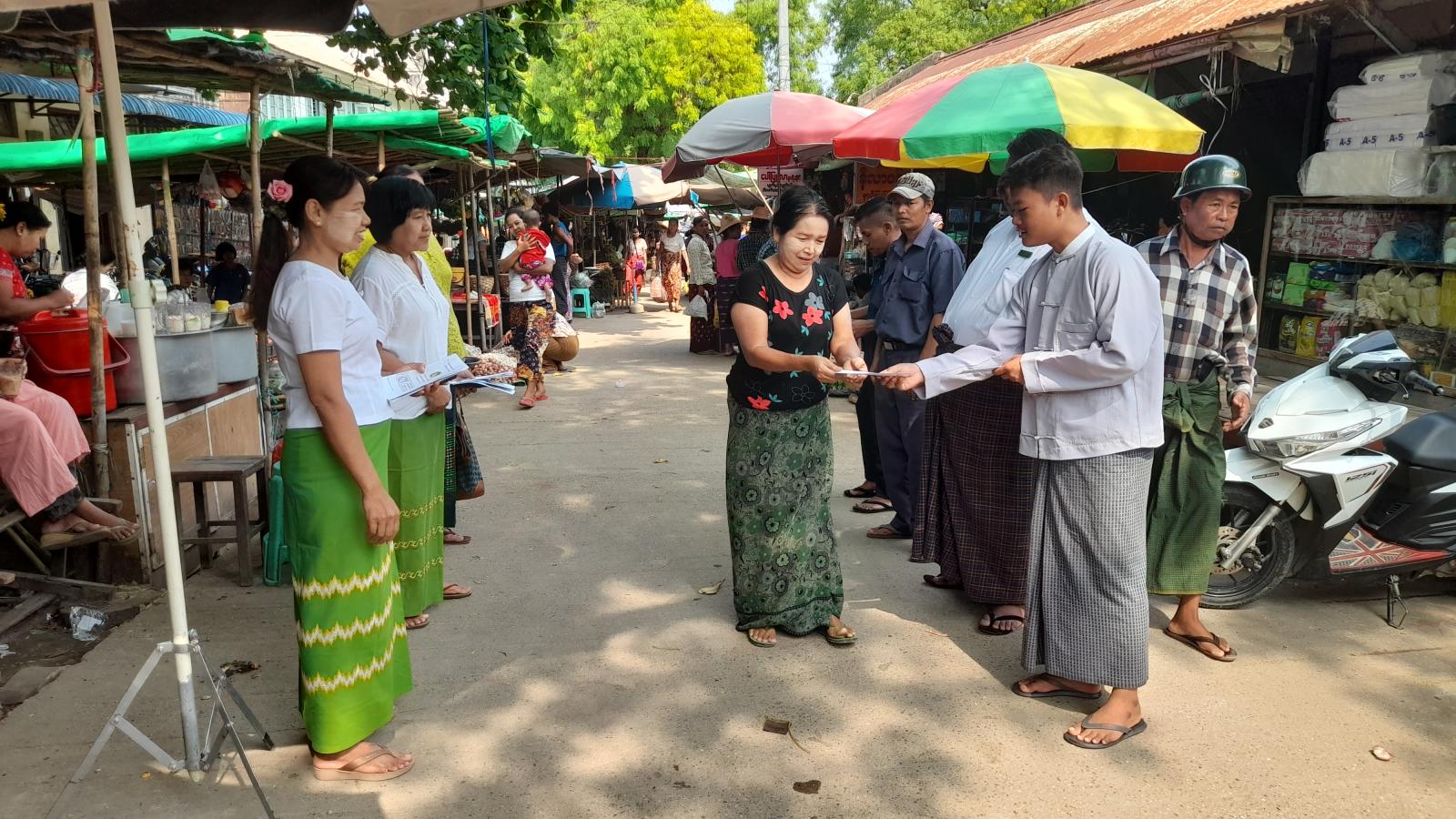 မကွေးတိုင်းဒေသကြီး၊ ချောက်ခရိုင်၊ ချောက်မြို့မစျေး၌ သဘာဝပတ်ဝန်းကျင်ထိန်းသိမ်းရေးနှင့် ပြည်သူများပလတ်စတစ်အိတ်လျော့နည်းသုံးစွဲစေရန်ရည်ရွယ်၍ အပတ်စဉ်တနင်္လာနေ့တိုင်း ပလတ်စတစ်အိတ်၊ ကြွပ်ကြွပ်အိတ်များ မသုံးစွဲရေးနေ့ သတ်မှတ်ပြီး အကောင်အထည် ဖော်ဆောင်ရွက်လျက်ရှိရာ ယနေ့နံနက် ၉ နာရီအချိန်က ချောက်မြို့မစျေးတွင် ပလပ်စတစ်အိတ်ဖြင့် ထုပ်ပိုးရောင်းချခြင်းမရှိစေရန်အတွက် စစ်ဆေးခြင်းနှင့် ပလတ်စတစ်အိတ်အစား အင်ဖက်၊ ငှက်ပျောဖက်၊ သတင်းစာစက္ကူတို့ဖြင့် အစားထိုးထုတ်ပိုး သုံးစွဲစေရေး အသိပညာပေးခြင်း၊ အသိပညာပေးလက် ကမ်းစာစောင်များဖြန့်ဝေခြင်း၊ ဆေးဆိုင်များတွင် ဆေးအာနိသင်ပျက်စီးသော MixtardInsulin ဆေးများရောင်းချခြင်းရှိ/မရှိ စစ်ဆေးခဲ့ကြောင်း သိရသည်။