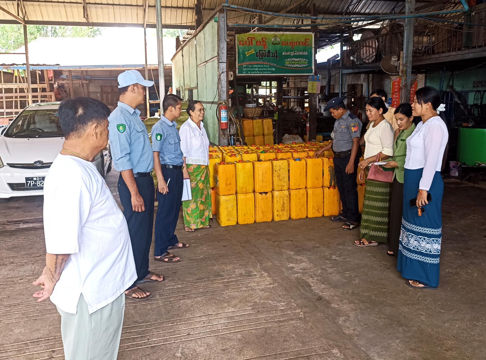ထိုသို့စစ်ဆေးရာတွင် စက်သုံးဆီထုတ်လုပ်သည့် စက်ရုံများသန့်ရှင်းမှုရှိစေရေး၊ စားသုံးဆီဈေးနှုန်းတည်ငြိမ်မှုရှိစေရေး၊ ဈေးကွက်အတွင်း ပြတ်လပ်မှုမဖြစ်ပေါ်စေရေးနှင့် လွယ်လင့်တကူ ဝယ်ယူရရှိနိုင်ရေး၊ စားသုံးသူ(End User)များ ဝယ်ယူသည့်အချိန်ထိ ဈေးနှုန်းကြီးမြင့်မှု မဖြစ်ပေါ်စေရေးတို့အတွက် ကွင်းဆင်းကြပ်မတ် စစ်ဆေးခဲ့ကြပြီး မိုင်းရယ်မြို့နယ်တွင် စားအုန်းဆီ တစ်ပိဿာ ၁၀၀၀ဝိ/ ကျပ်၊ ပဲဆီ(ရိုးရိုး) တစ်ပိဿာ ၁၂၀၀ဝိ/ ကျပ်၊ ပဲဆီ(ရှယ်) တစ်ပိဿာ ၁၆၀၀ဝိ/ကျပ်ဖြင့် ရောင်းချလျက်ရှိကြောင်း သိရသည်။
