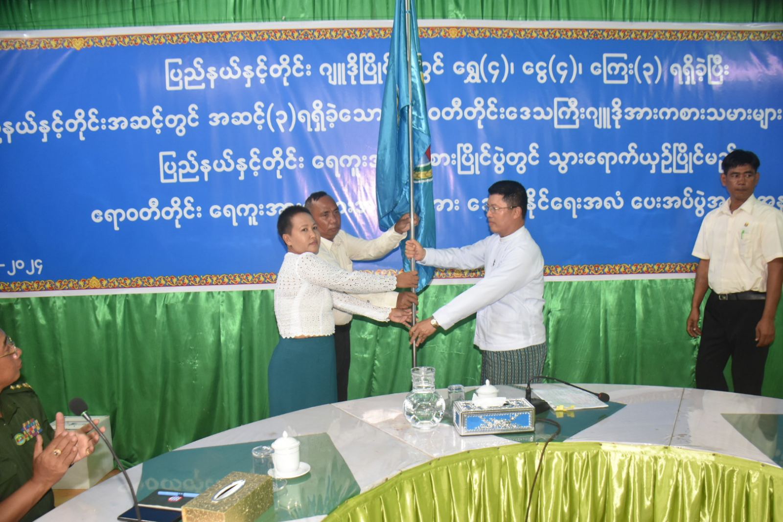 ဆက်လက်၍ တိုင်းဒေသကြီးဝန်ကြီးချုပ်နှင့်အဖွဲ့သည် မြောင်းမြခရိုင်အထွေထွေအုပ်ချုပ်ရေးဦးစီးဌာန၊ အစည်းအဝေးခန်းမတွင်ပြုလုပ်သည့် ပြည်နယ်နှင့်တိုင်းဒေသကြီး ဂျူဒိုပြိုင်ပွဲတွင် ရွေတံဆိပ်လေးခု၊ ငွေတံဆိပ်လေးခု၊ ကြေးတံဆိပ်သုံးခုရရှိခဲ့ပြီး ပြည်နယ်နှင့်တိုင်းဒေသကြီး အဆင့်တွင် အဆင့်(၃) ရရှိခဲ့သော ဧရာဝတီတိုင်းဒေသကြီး ဂျူဒိုအားကစားသမားများအား ဂုဏ်ပြုပွဲနှင့် ၂၀၂၄ ခုနှစ်၊ ပြည်နယ်နှင့်တိုင်းဒေသကြီး ရေကူးအားကစားပြိုင်ပွဲတွင် သွားရောက်ယှဉ်ပြိုင်မည့် ဧရာဝတီတိုင်းဒေသကြီး ရေကူးအားကစားအဖွဲ့အား အောင်နိုင်ရေး အလံပေးအပ်ပွဲအခမ်းအနားသို့ တက်ရောက်ခဲ့သည်။