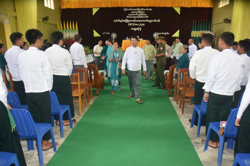 ဧရာဝတီတိုင်းဒေသကြီး၊ ဖျာပုံခရိုင်၊ ဘိုကလေးပညာရေးဒီဂရီကောလိပ်၊ ပညာဂုဏ်ရည်ခန်းမတွင် တိုင်းဒေသကြီးဝန်ကြီးချုပ်ဦးတင်မောင်ဝင်းနှင့် လုပ်ငန်းခွင်အကြို မူလတန်းဆရာ အတတ်ပညာသင်တန်း PPTT(၁၁/၂၀၂၄)သို့ တက်ရောက်နေသည့် သင်တန်းသား၊ သင်တန်းသူများနှင့်တွေ့ဆုံပွဲကို ယမန်နေ့နံနက်ပိုင်းက ပြုလုပ်ခဲ့သည်။