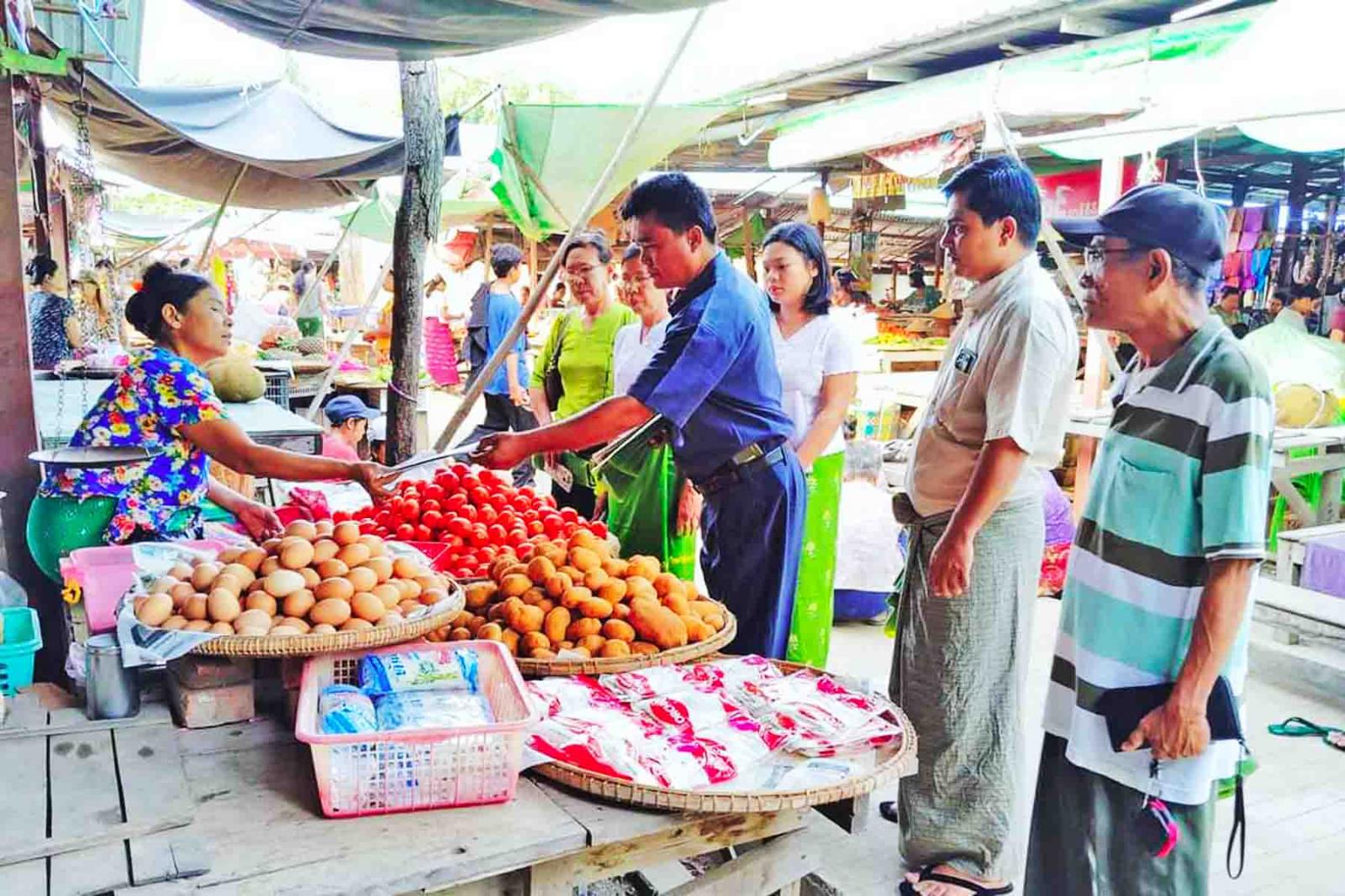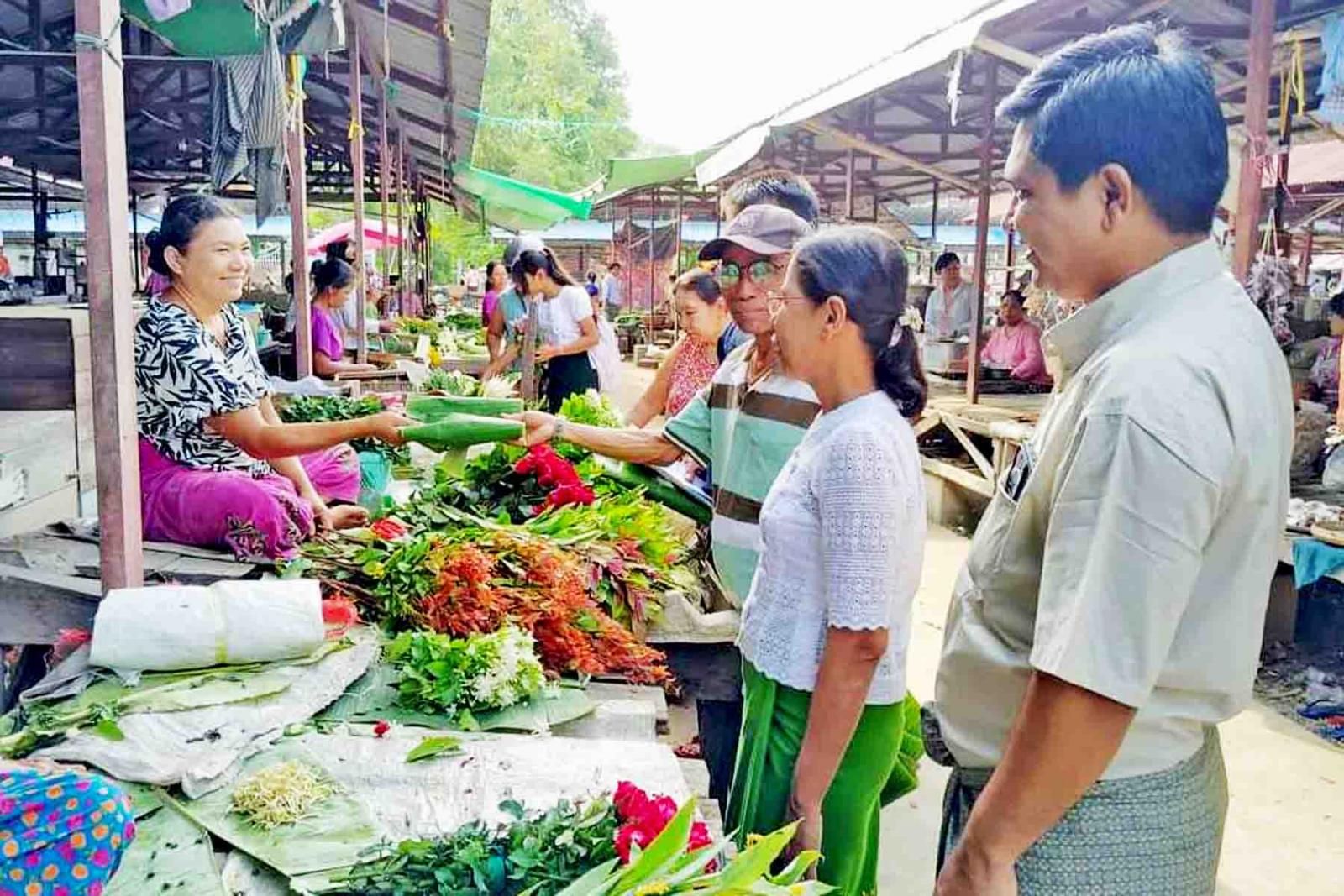 ထို့နောက် ဌာနဆိုင်ရာတာဝန်ရှိသူများ ပူးပေါင်းအဖွဲ့က ဈေးရောင်းဈေးဝယ် ပြည်သူများကို သဘာဝပတ်ဝန်းကျင် ကာကွယ်ထိန်းသိမ်းရေးဆိုင်ရာ အသိပညာပေး လက်ကမ်းစာစောင်များကို ဖြန့်ဝေပေးပြီး ပလတ်စတစ်ပစ္စည်းလျှော့ချနိုင်ရေးအတွက် ဈေးရောင်းချရာတွင် ပလတ်စတစ်ပစ္စည်း အစားထိုး အသုံးပြုနိုင်ရန် ငှက်ပျောဖက်၊ အင်ဖက်၊ ကြာဖက်၊ စက္ကူတို့ကို အခမဲ့ဖြန့်ဝေပေးခဲ့ကြောင်း သိရသည်။