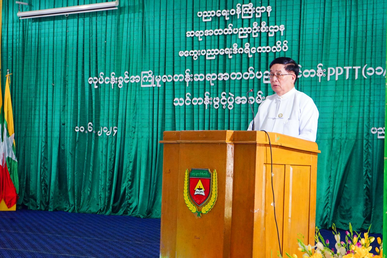 ပညာရေးဝန်ကြီးဌာန၊ ဆရာအတတ်ပညာဦးစီးဌာန မကွေးပညာရေးဒီဂရီကောလိပ်၏ လုပ်ငန်းခွင်အကြို မူလတန်းဆရာအတတ်ပညာသင်တန်း PPTT အမှတ်စဉ်(၁၁/၂၀၂၄) ဖွင့်ပွဲအခမ်းအနားကို ယနေ့နံနက် ၉ နာရီက အဆိုပါကျောင်းရှိ ပညာ့ဗိမာန်ခန်းမ၌ကျင်းပရာ အခမ်းအနားသို့ မကွေးတိုင်းဒေသကြီးအစိုးရအဖွဲ့ဝန်ကြီးချုပ် ဦးတင့်လွင်နှင့် ဇနီး၊ တိုင်းဒေသကြီးတရားလွှတ်တော် တရားသူကြီးချုပ်၊ တိုင်းဒေသကြီးအစိုးရအဖွဲ့ဝင် ဝန်ကြီးများနှင့် ၎င်းတို့၏ ဇနီးများ၊ တိုင်းဒေသကြီး ဥပဒေချုပ်၊ တိုင်း/ခရိုင်/မြို့နယ်အဆင့် ဌာနဆိုင်ရာ တာဝန်ရှိသူများ၊ သင်ကြားရေးဆရာ/ဆရာမများနှင့် ကျောင်းသား၊ ကျောင်းသူများ တက်ရောက်ခဲ့ကြသည်။