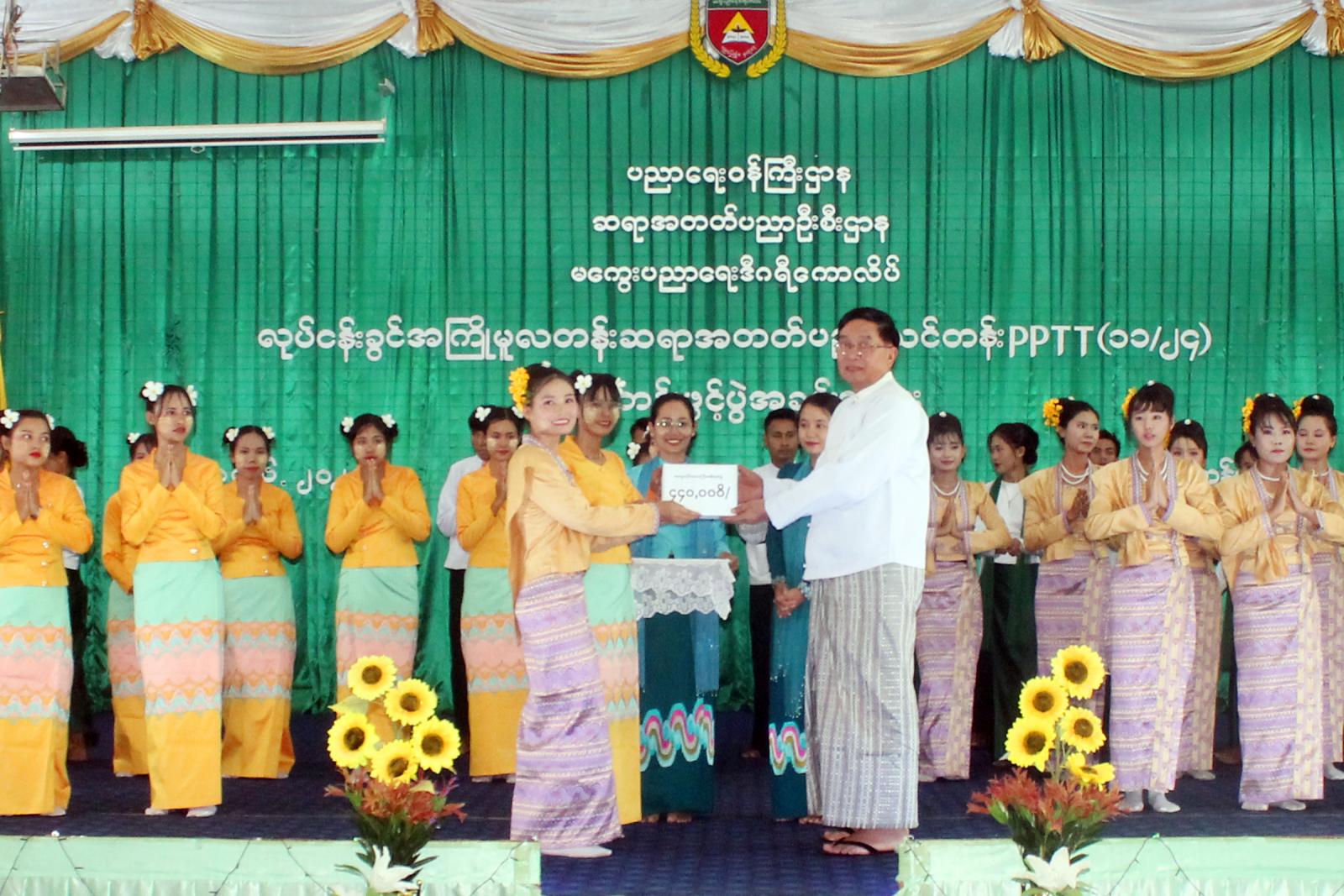 ထို့နောက် မကွေးပညာရေးဒီဂရီကောလိပ်မှ ကျောင်းအုပ်ဆရာမကြီး ဒေါ်ခင်မြင့်လှိုင်က သင်တန်းဆိုင်ရာအချက်အလက်များအား ရှင်းလင်းတင်ပြပြီး ကျောင်းသူလေးများက “သနပ်ခါး”တေးသီချင်းနှင့် “ပညာပန်းတို့ လန်းရာမြေ”တေးသီချင်းများဖြင့် ဖျော်ဖြေတင်ဆက်ကြရာ ဖျော်ဖြေတင်ဆက်ခဲ့သူများအား တိုင်းဒေသကြီးဝန်ကြီးချုပ်က ဂုဏ်ပြုဆုငွေများ ပေးအပ်ချီးမြှင့်ခဲ့ပြီး အခမ်းအနားအပြီးတွင် တိုင်းဒေသကြီးဝန်ကြီးချုပ်နှင့် တာဝန်ရှိသူများက သင်တန်းသား၊ သင်တန်းသူများအား ရင်းရင်းနှီးနှီး လိုက်လံနှုတ်ဆက်ခဲ့ကြောင်း သိရသည်။