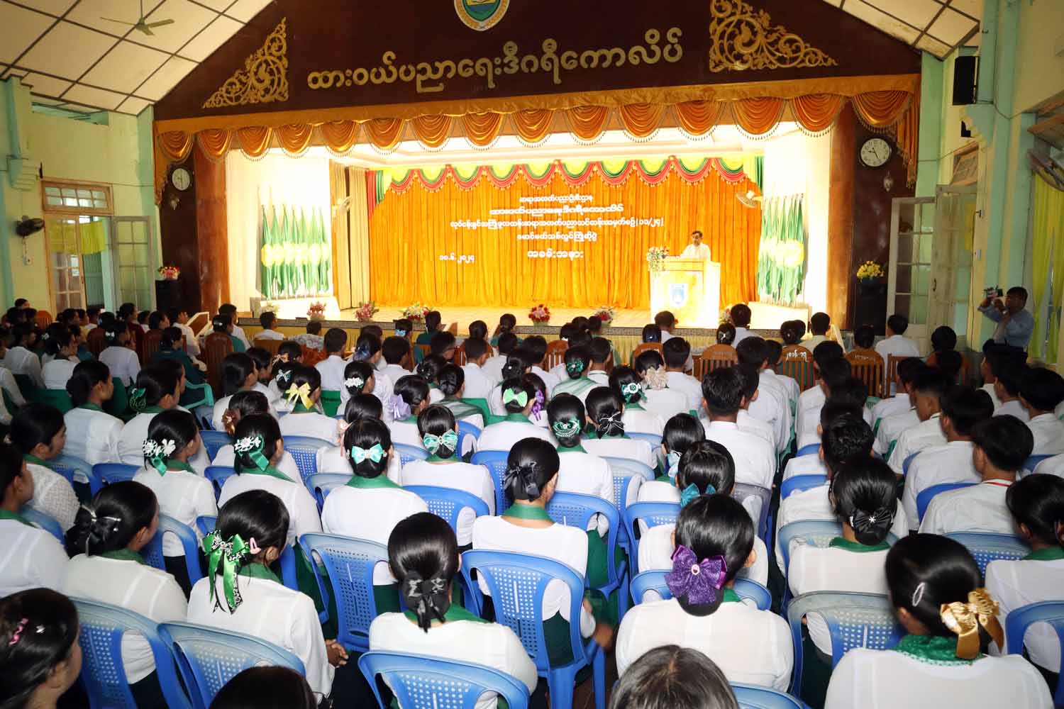 အခမ်းအနားတွင် တိုင်းဒေသကြီးဝန်ကြီးချုပ် ဦးမြတ်ကိုက လုပ်ငန်းခွင်မူလတန်းဆရာအတတ်ပညာသင်တန်း တက်ရောက်ကြမည့်ဆရာ၊ ဆရာမများသည် မကြာမီနိုင်ငံတော်၏အဓိကအခန်းကဏ္ဍတစ်ခုဖြစ်သော ပညာရေးအခန်းကဏ္ဍကြီးတွင် ကျရာတာဝန် ကျေပွန်စွာထမ်းဆောင်ရင်း နိုင်ငံတော်၏အကျိုးကို “ဆရာဆိုသည့်ဘဝ”ဖြင့် ပေးဆပ်သွားမည့်သူများလည်းဖြစ်ကြောင်း၊ အခြေခံပညာရေး၏ ရည်မှန်းချက်များဖြစ်သည့် နိုင်ငံသားတိုင်းအခြေခံပညာပြီးဆုံးသည်အထိ သင်ယူတတ်မြောက်ရန်၊ ဗလငါးတန်နှင့်ပြည့်စုံသည့် နိုင်ငံသားကောင်းများ ဖြစ်လာစေရန်၊ ပြည်သူ့နီတိ၊ ဒီမိုကရေစီကျင့်စဉ်နှင့် လူ့အခွင့်အရေးဆိုင်ရာ စံနှုန်းများဖြင့်ဥပဒေကို လေးစားလိုက်နာတတ်သည့် နိုင်ငံ့သားကောင်းများ ဖြစ်လာစေရန်၊ ပြည်ထောင်စုစိတ်ဓာတ်ဖွံ့ဖြိုးပြီး တိုင်းရင်းသားလူမျိုးများရဲ့ ဘာသာစကား၊ စာပေ၊ ယဉ်ကျေးမှု၊ အနုပညာ၊ ရိုးရာဓလေ့နှင့် သမိုင်းအမွေအနှစ်တို့ကို တန်ဖိုးထားထိန်းသိမ်းပြီး ယင်းတို့ကို လက်ဆင့်ကမ်းနိုင်သည့် နိုင်ငံသားများဖြစ်လာစေရန်၊ လူတစ်ဦးချင်းဖြစ်စေ၊ အဖွဲ့အစည်းလိုက် ဖြစ်စေ မတူကွဲပြားမှုများကို နားလည်လက်ခံရန်၊ တန်းတူညီမျှမှုကို တန်ဖိုးထားလေးစားပြီး ငြိမ်းချမ်းရေး အခြေခံအသိများနှင့်အညီ လက်တွေ့ကျင့်သုံးနေထိုင်တတ်စေရန်၊ မြန်မာနိုင်ငံသား တစ်ဦးဖြစ်ရသည့်အတွက် ဂုဏ်ယူတတ်စေရန်စတဲ့ ရည်မှန်းချက်များကို ဆရာ၊ ဆရာမများအနေဖြင့် သိထားရုံသာမက ကိုယ်တိုင်လိုက်နာကျင့်သုံးပြီး မိမိတို့၏တပည့်များကိုလည်း ပြန်လည်လက်ဆင့်ကမ်း ပြုစုပျိုးထောင်ပေးရမည့်သူများဖြစ်ကြောင်း၊ သင်တန်းကာလတစ်လျှောက်တွင် ဆရာ၊ ဆရာများက အားသွန်ခွန်စိုက် သင်ကြားလေ့ကျင့်ပေးသလို သင်ယူသူများကလည်း တစိုက်မတ်မတ် ကြိုးစားသင်ယူကြရန် လိုအပ်ကြောင်း ပြောကြားသည်။