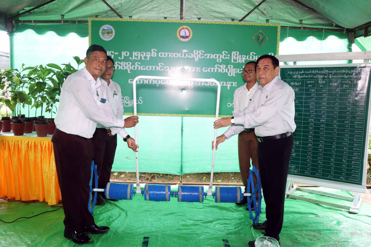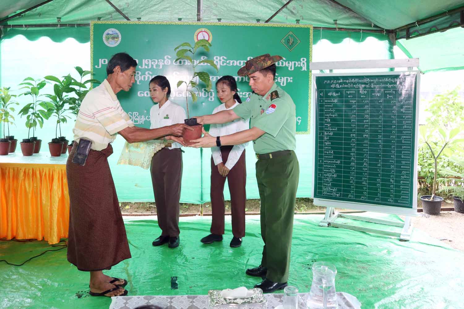 ထို့နောက် တိုင်းဒေသကြီး ဝန်ကြီးချုပ်ဦးမြတ်ကိုက တောင်သူများအား တိုင်းဒေသကြီးရန်ပုံငွေဖြင့် ဝယ်ယူသောမျိုးစေ့ချ ကိရိယာများနှင့် ကော်ဖီပျိုးပင်များထောက်ပံ့ပေးအပ်ပြီး ရှင်သန်ကြီးထွားအောင် ပြုစုပျိုးထောင်ပေးရန်လိုအပ်ကြောင်း ပြောကြားကာ တိုင်းဒေသကြီး တရားလွှတ်တော်တရားသူကြီးချုပ်၊ တိုင်းဒေသကြီးဝန်ကြီးများ၊ ကမ်းရိုးတန်းဒေသတိုင်း စစ်ဌာနချုပ် ဒုတိယတိုင်းမှူးနှင့် တာဝန်ရှိသူများက ကော်ဖီပျိုးပင်များ ထောက်ပံ့ပေးအပ်သည်။
