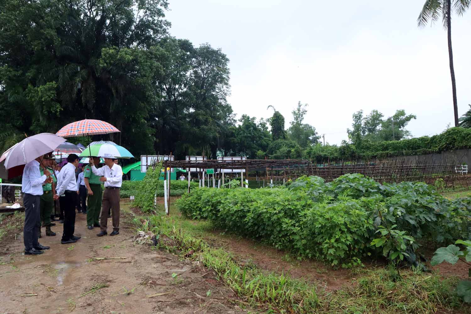 ဆက်လက်၍ တိုင်းဒေသကြီးဝန်ကြီးချုပ်က ကော်ဖီပျိုးခင်း ပျိုးထောင်ထားရှိမှု၊ လယ်ယာမြေ အသစ်ဖော်ထုတ်ထားရှိမှု၊ School Garden ဆောင်ရွက်ထားရှိမှုများအား ကြည့်ရှုစစ်ဆေးပြီး လိုအပ်သည်များကို တာဝန်ရှိသူများအား မှာကြားသည်။