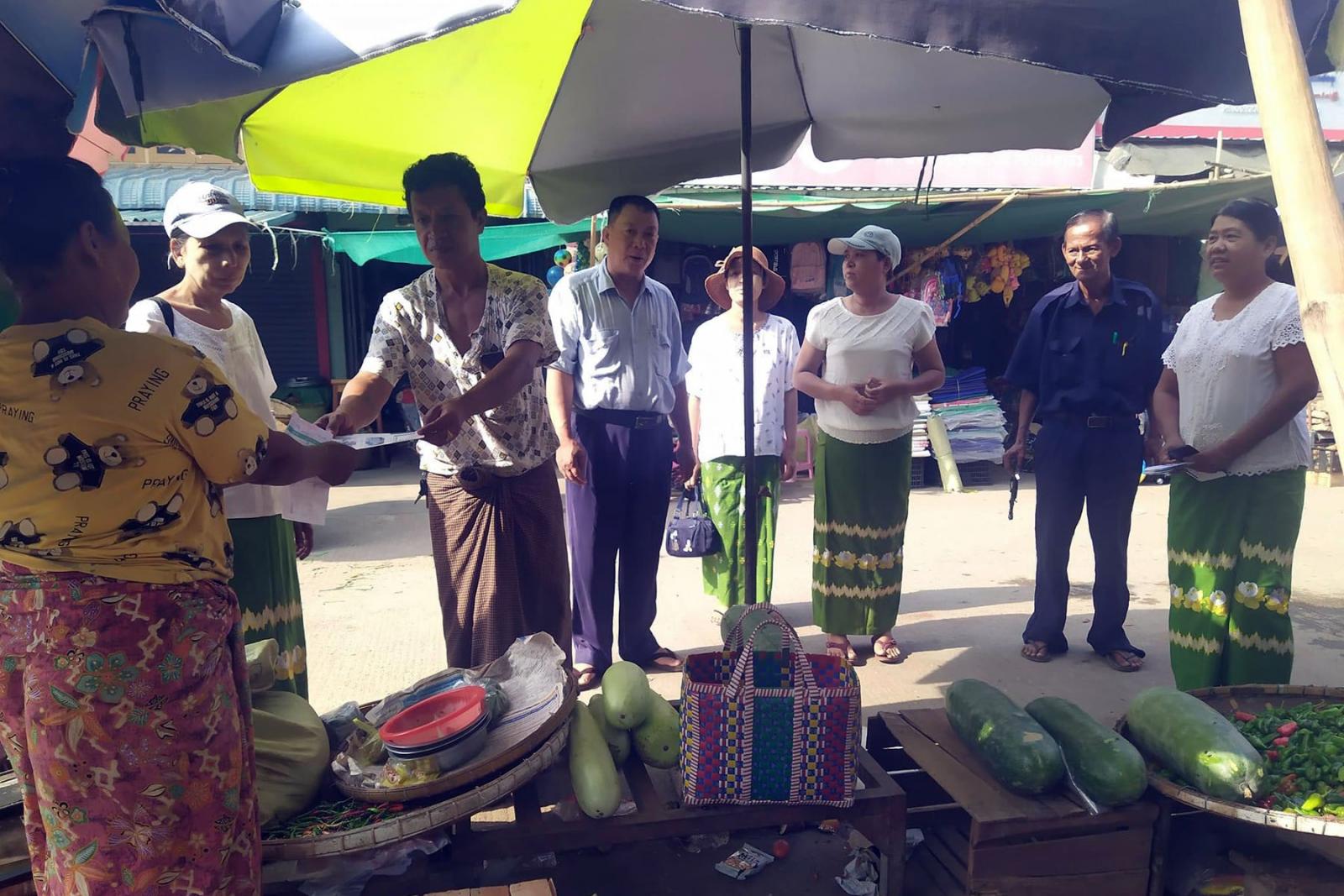 မကွေးတိုင်းဒေသကြီး၊ အောင်လံခရိုင်၊ အောင်လံမြို့၌ သဘာဝပတ်ဝန်းကျင် ထိန်းသိမ်းရေးနှင့် ပြည်သူများ ပလတ်စတစ်အိတ်လျှော့ချသုံးစွဲစေရန် ရည်ရွယ်၍ မြို့နယ်စည်ပင်သာယာ မြို့မဈေးအတွင်း ဈေးရောင်းဈေးဝယ်ပြည်သူများအား ပလတ်စတစ်ကြွပ်ကြွပ်အိတ်အစား ငှက်ပျောဖက်၊ အင်ဖက်၊ စက္ကူအိတ်များ အသုံးပြုနိုင်ရေး အသိပညာပေး လက်ကမ်းစာစောင်များကို ယမန်နေ့ နံနက် ၈ နာရီခွဲက ဆောင်ရွက်ခဲ့သည်။