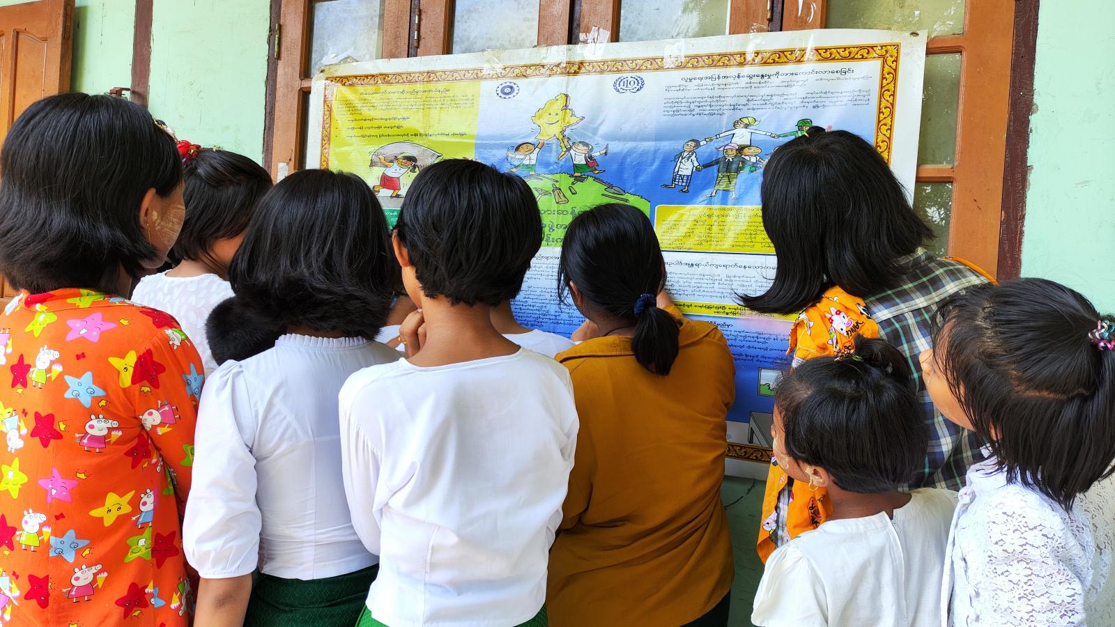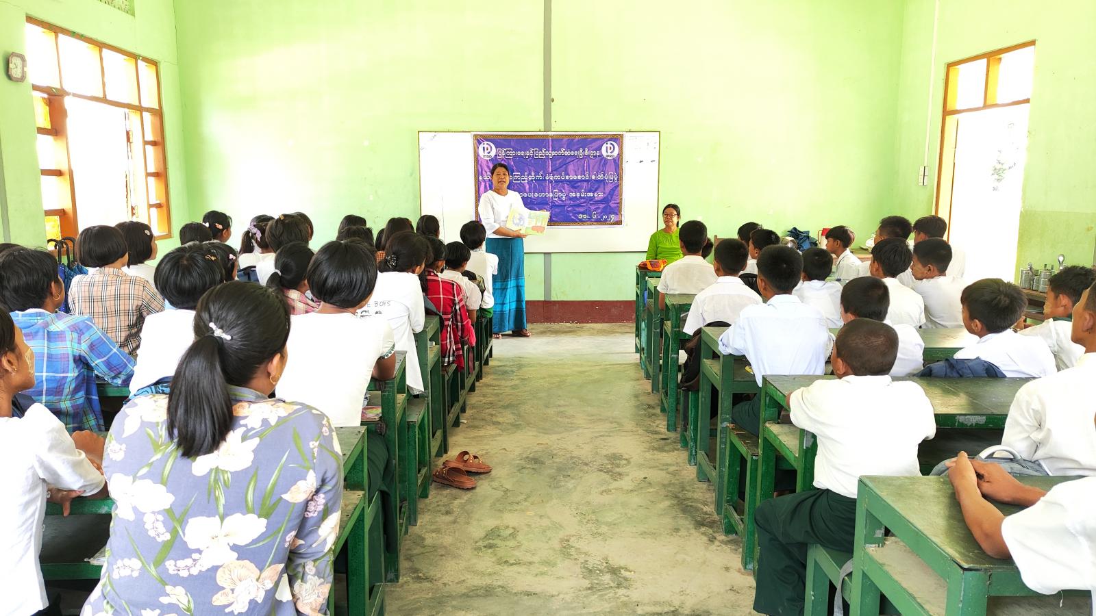 ထို့နောက် ကျောင်းသား၊ ကျောင်းသူများအား ရုပ်ပြပုံပြင်များပြောခြင်း၊ ကိုယ်ကာယလှုပ်ရှားမှု Activity လုပ်ငန်းစဥ်များလိုက်ပါဆောင်ရွက်စေခြင်းများပြုလုပ်ခဲ့ပြီး ပြန်ကြားရေးနှင့်ပြည်သူ့ဆက်ဆံရေးဦးစီးဌာနမှ ခင်းကျင်းပြသထားသည့် စာအုပ်စာစောင်များ၊ ကလေးအလုပ်သမားပပျောက်ရေးနံရံကပ်စာစောင်နှင့် မူးယစ်ဆေးဝါးအန္တရာယ်အသိပညာပေးနံရံကပ်စာစောင်များကို စိတ်ပါဝင်စားစွာ လေ့လာကြည့်ရှုခဲ့ကြောင်း သိရသည်။