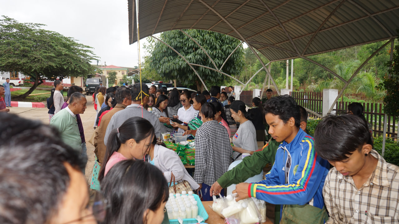 ရှမ်းပြည်နယ်(တောင်ပိုင်း)၊ ပအိုဝ်းကိုယ်ပိုင်အုပ်ချုပ်ခွင့်ရဒေသ၊ ဟိုပုံးမြို့နယ်ရှိ ဌာနဆိုင်ရာဝန်ထမ်းများအား သက်သာသော ဈေးနှုန်းဖြင့် ကြက်ဥ၊ နွားနို့များနှင့် စားသောက်ကုန်ပစ္စ္စည်းများ ဖြန့်ဖြူးရောင်းချပေးခြင်းကို ယနေ့နံနက် ၉ နာရီအချိန်က ပအိုဝ်းကိုယ်ပိုင်အုပ်ချုပ်ခွင့်ရဒေသ စီမံအုပ်ချုပ်ရေးအဖွဲ့ရုံးရှေ့တွင် ရောင်းချပေးလျက်ရှိသည်။