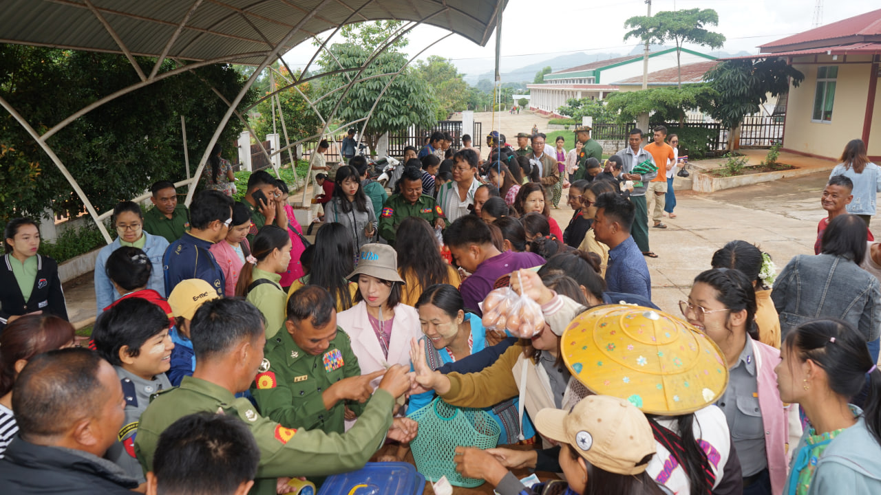 ထိုသို့ရောင်းချပေးရာတွင် ဟိုပုံးတပ်နယ်ကွပ်ကဲမှုအောက်ရှိ ကျောင်း၊ တပ်ရင်း/တပ်ဖွဲ့များမှ တာဝန်ရှိသူများက နိုင်ငံ့တာဝန်ထမ်းဆောင်နေသော ဌာဆိုင်ရာဝန်ထမ်းများ စားဝတ်နေရေး တစ်ဖက်တစ်လမ်းမှ အဆင်ပြေစေရန်နှင့် သက်သာချောင်ချိရေးကိုရှေးရှု၍ ပအိုဝ်းကိုယ်ပိုင်အုပ်ချုပ် ခွင့်ဒေသအဆင့်ရုံးမှဝန်ထမ်းများ၊ မြို့နယ်အဆင့်ဌာနဆိုင်ရာဝန်ထမ်းများအတွက် ကြက်ဥ၊ နွားနို့၊ ဒိန်ချဉ်၊ ဝက်သား၊ စားသောက်ကုန်ပစ္စည်းများ၊ စက်ရုံထုတ်ပစ္စည်းများနှင့် ဟင်းသီးဟင်းရွက်များကို သက်သာသောဈေးနှုန်းဖြင့် ဖြန့်ဖြူးရောင်းချပေးလျက်ရှိကြောင်းသိရသည်။ အဆိုပါဖြန့်ဖြူးရောင်းချပေးနေမှုအား တပ်မတော်ကွန်ပျူတာနှင့် နည်းပညာသိပ္ပံကျောင်းမှ ဒုတိယကျောင်းအုပ်ကြီး ဗိုလ်မှူးကြီး စောအောင်မျိုး၊ ပအိုဝ်းကိုယ်ပိုင်အုပ်ချုပ်ခွင့်ရဒေသစီမံအုပ်ချုပ်ရေးအဖွဲ့ အတွင်းရေးမှူး ဦးတင်ထူးမောင်နှင့်အဖွဲ့ဝင်များ၊ မြို့နယ်စီမံအုပ်ချုပ်ရေးအဖွဲ့ အဖွဲ့ဝင်များနှင့်တာဝန်ရှိသူများက ကြည့်ရှုခဲ့ကြကြောင်း သိရသည်။