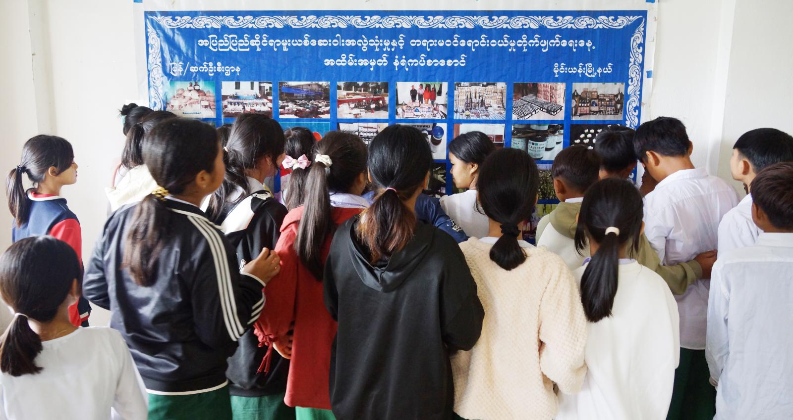 ရှမ်းပြည်နယ် (အရှေ့ပိုင်း)၊ ကျိုင်းတုံခရိုင်၊ မိုင်းယန်းမြို့နယ် ပြန်ကြားရေးနှင့်ပြည်သူ့ဆက်ဆံ ရေးဦးစီးဌာနမှ ကျောင်းသား/ ကျောင်းသူများ အသိပညာဗဟုသုတများတိုးပွားစေရန်နှင့် စာဖတ်သည့် အလေ့အထအကောင်းများ ရရှိစေရန်ရည်ရွယ်၍ နယ်လည့်ဝန်ဆောင်မှု အသိပညာပေး ဟောပြောပွဲနှင့် နံရံကပ်စာစောင်များပြသခြင်းကို ဇွန် ၁၁ ရက်နံနက် ၁၀ နာရီက ဈေးတန်းရပ်ကွက်အတွင်းရှိ အခြေခံပညာအလယ်တန်းကျောင်း၌ ပြုလုပ်ခဲ့သည်။