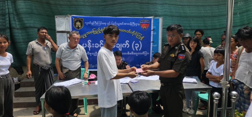 ချမ်းမြသာစည်မြို့နယ်တွင် ပန်းခင်းစီမံချက် (၃) ဖြင့် နိုင်ငံသားစိစစ်ရေးကတ်ပြားများ ကွင်းဆင်းပြုလုပ်ပေးခြင်းနှင့် နိုင်ငံသားစိစစ်ရေးကတ်ပြား ရရှိသူများအား ကတ်ပြားများပေးအပ်ခြင်းကို ယနေ့နံနက် ၁၀ နာရီအချိန်က ချမ်းမြသာစည်မြို့နယ်၊ အောင်သာယာရပ်ကွက်တွင် ကွင်းဆင်းဆောင်ရွက်ခဲ့သည်။