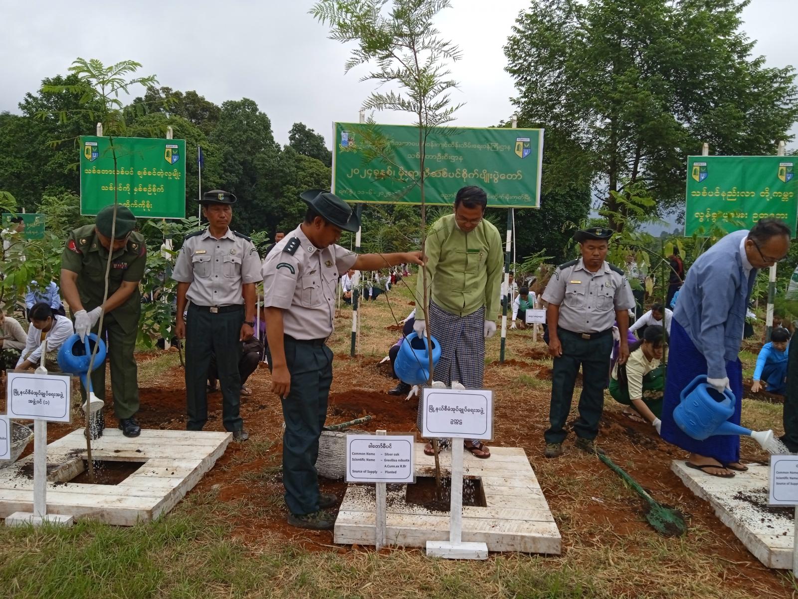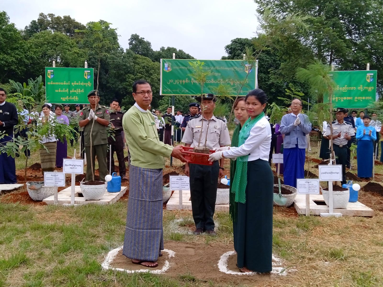 ရှေးဦးစွာ မြို့နယ်စီမံအုပ်ချုပ်ရေးအဖွဲ့ဥက္ကဋ္ဌ ဦးအောင်မြင့်ကျော်၊ မြို့နယ်စီမံအုပ်ချုပ်ရေးအဖွဲ့ အဖွဲ့ဝင် (၁) ဗိုလ်မှူးကျော်သူရွှေနှင့် မြို့နယ်သစ်တောဦးစီးဌာနမှ ဦးဝင်းခိုင်ဖြိုးတို့က တာဝန်ရှိသူများအား ပျိုးပင်များပေးအပ်၍ မြို့နယ်ဌာနဆိုင်ရာများ၊ လူမှုကူညီရေးအသင်းအဖွဲ့များ၊ ဒေသခံပြည်သူများ၊ ကျောင်းသား/ သူများ စုစုပေါင်းအင်အား(၃၅၀)ဦး ဖြင့် ခါတော်မီ၊ ရေသင်းဝင်၊ ထင်းရှုး၊ ချယ်ရီ၊စိန်ပန်းပြာ စသည့် ပျိုးပင်မျိုးစုံ(၃၅၀)ပင်ကို စိုက်ပျိုးခဲ့ကြောင်း သိရှိရသည်။