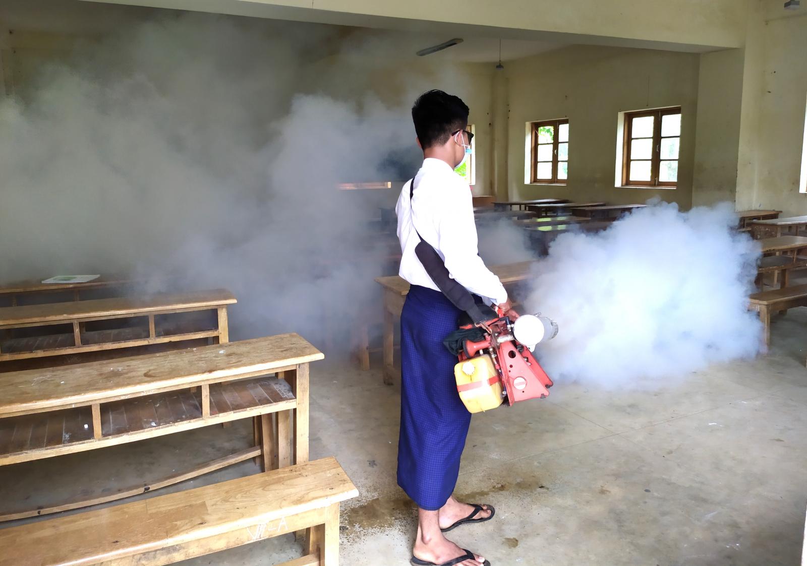 အဆိုပါ ခြင်ဆေးဖျန်းခြင်းလုပ်ငန်းကို အမာမြို့၊ မြို့အုပ်ချုပ်ရေးမှူး ဦးပြည့်စုံဝင်း၏ဦးဆောင်မှုဖြင့်၊ ကျေးလက်ကျန်းမာရေးဦးစီးဌာန၊ ကျန်းမာရေးမှူး ဦးအောင်မြင့်ဦးနှင့်ကျန်းမာရေးဝန်ထမ်းများ၊ ဖျာပုံမြို့နယ်၊ ငှက်ဖျားရောဂါတိုက်ဖျက်ရေးဌာနမှ တာဝန်ခံဆရာဦးသိန်းနိုင်ထွန်းနှင့်ဝန်ထမ်းများက လာရောက်ဖျန်းပေးပြီး၊ သွေးလွန်တုပ်ကွေးရောဂါ ပျံ့ပွားမှုမရှိစေရေး ကြိုတင်ကာကွယ်နိုင်ရန် အမာမြို့(၁)ရပ်ကွက်ရှိ သီတာရာမမြို့ဦးကျောင်းတိုက်၊ ဘုန်းတော်ကြီးသင်ပညာရေးကျောင်း၊ အခြေခံပညာအထက်တန်းကျောင်း၊ လူမှုဝန်ထမ်းဦးစီးဌာန၊ မူလတန်းကြိုကျောင်း၊ ရပ်ကွက်များအတွင်းရှိ လူနေအိမ်များ၌ ခြင်ဆေးများဖျန်းပေးခဲ့ကြောင်း သိရသည်။