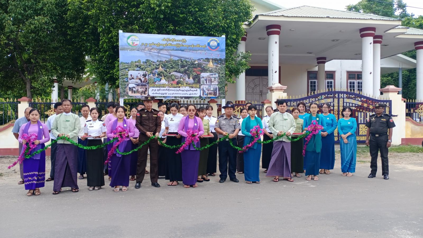 ရှေးဦးစွာ ပြည်သူအားလုံးပါဝင်လို့ သန်းခေါင်စာရင်းကောက်ကြစို့ အသိပညာပေးဆိုင်းဘုတ် စိုက်ထူပွဲတွင် ခရိုင်စီမံအုပ်ချုပ်ချုပ်ရေးအဖွဲ့ဥက္ကဋ္ဌ ခေတ္တခရိုင်အုပ်ချုပ်ရေးမှူး ဦးမင်းအောင်၊ ခရိုင်စီမံအုပ်ချုပ်ရေးအဖွဲ့အတွင်းရေးမှူး ဒုတိယရဲမှူးကြီး သန်းကျော်၊ ခရိုင်(လဝက) ဒုတိယညွှန်ကြားရေးမှူး ဦးခင်မောင်ဌေးနှင့် မြို့နယ်စီမံအုပ်ချုပ်ရေးအဖွဲ့ဥက္ကဋ္ဌ ဦးဘုန်းထက်နိုင်မြင့်တို့က ဖဲကြိုးဖြတ်ဖွင့်လှစ်ပေးကြသည်။
