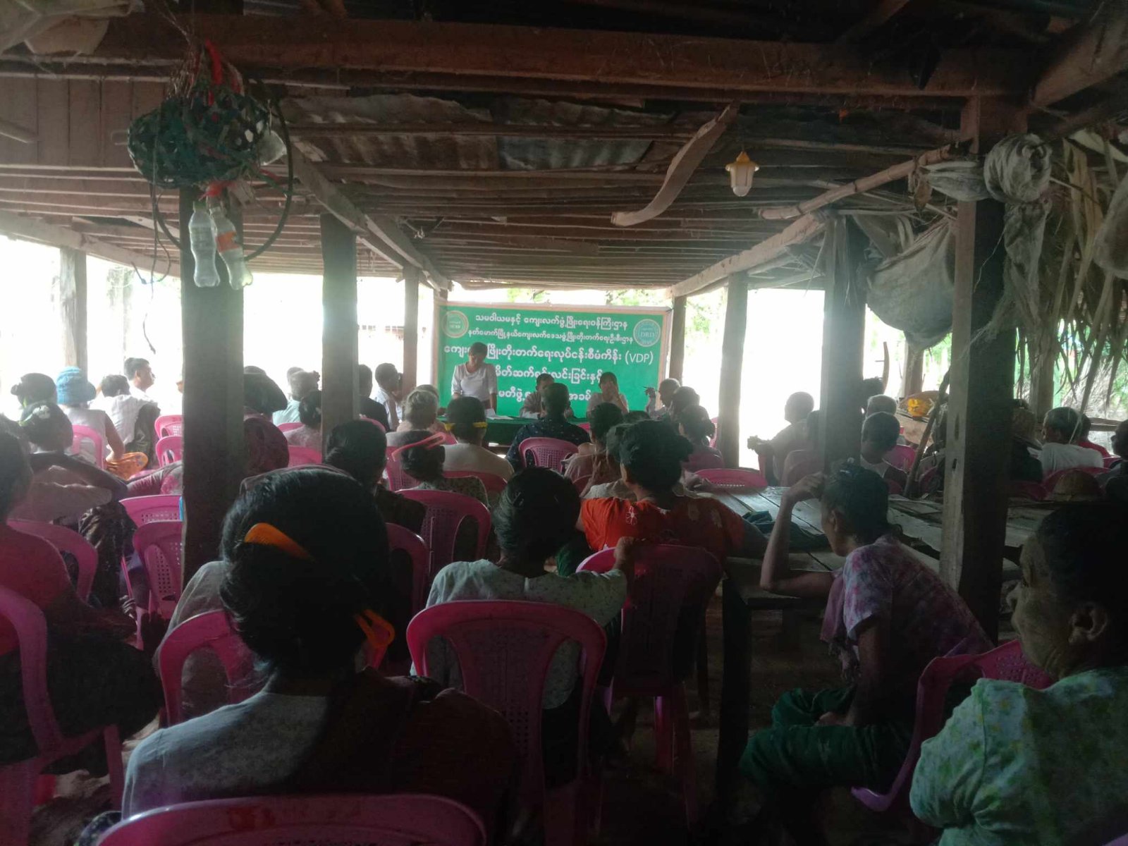 ရှေးဦးစွာ နတ်မောက်မြို့နယ် ကျေးလက်ဒေသဖွံ့ဖြိုးတိုးတက်ရေးဦးစီးဌာန မြို့နယ်ဦးစီးမှူး ဦးဝင်းနိုင်ဦးမှ မိမိတို့ဌာနအနေဖြင့် ကျေးလက်နေပြည်သူများ၏ လူမှုစီးပွားဘဝဖွံ့ဖြိုး တိုးတက်ရေးအတွက် ကျေးရွာသူကျေးရွာသားများကိုယ်တိုင် မိမိတို့ကျေးရွာ၏ ပကတိလိုအပ်ချက်များပါဝင်သော ကျေးရွာဖွံ့ဖြိုးရေးစီမံချက်များကို မိမိတို့ကိုယ်တိုင်ရေးဆွဲပြီး အဆိုပါစီမံချက်များကို မြို့နယ်စီမံကိန်းရေးဆွဲရေးလုပ်ငန်းစဉ်များတွင် ထည့်သွင်းရေးဆွဲနိုင်ရေးအတွက် ကျေးရွာဖွံ့ဖြိုးတိုးတက်ရေးလုပ်ငန်းစီမံကိန်းကို အကောင်အထည်ဖော် ဆောင်ရွက်ခြင်းဖြစ်ကြောင်း၊ ကျေးရွာတစ်ရွာအတွက် လုပ်ငန်းစီမံကိန်း (VDP) ထောက်ပံ့ရန်ပုံငွေကျပ်သိန်း ၁၅၀ နှင့် ပြည်သူထည့်ဝင်ငွေတို့ပူးပေါင်း၍ ကျေးရွာဖွံ့ဖြိုးရေးလုပ်ငန်းများကို အကောင်အထည်ဖော်ဆောင်ရွက်သွားမည်ဖြစ်ကြောင်း၊ ဆက်လက်၍ နတ်မောက်မြို့နယ် ကျေးလက်ဒေသဖွံ့ဖြိုးတိုးတက်ရေးဦးစီးဌာန ဒုတိယဦးစီးမှူး ဦးတိုးတိုးအောင်မှ စီမံကိန်းလုပ်ငန်း အကောင်အထည်ဖော်ဆောင်ရွက်မည့် ကျေးရွာကော်မတီဝင်များ ရွေးချယ်မှုနှင့်ပတ်သက်၍ ဆွေးနွေးပြောကြားခဲ့ကြောင်း သိရသည်။ ဆက်လက်၍ အစည်းအဝေးတက်ရောက်လာသော ကျေးရွာသူ၊ ကျေးရွာသားများက စီမံကိန်းကော်မတီဝင်များအား တစ်ဦးချင်းမဲပေး၍ အဆိုပါကျေးရွာတွင် ကော်မတီရွေးချယ်ဖွဲ့စည်းခဲ့ကြောင်း နတ်မောက်မြို့နယ် ကျေးလက်ဒေသဖွံ့ဖြိုးတိုးတက်ရေးဦးစီးဌာန မြို့နယ်ဦးစီးမှူး ဦးဝင်းနိုင်ဦးထံမှ သိရသည်။