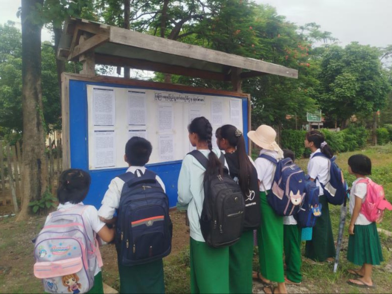 အဆိုပါ မြေစိုက်နံရံကပ်ပြဘုတ်တွင် ကလေးအလုပ်သမားဟူသည် အဘယ်နည်း၊ ကလေးအလုပ်သမားများအတွက် အဓိပ္ပာယ်ဖွင့်ဆိုချက်၊ အပြည်ပြည်ဆိုင်ရာပြဋ္ဌာန်းချက်များအကြောင်း၊ ကလေးသူငယ်အလုပ်သမားသည် တရားမဝင်ပါကြောင်းနှင့် ဘေးအန္တာရာယ်ကျရောက်နေသော ကလေးအလုပ်သမားအကြောင်းများစသည့် အကြောင်းအရာအချက်အလက်များကို ပြည်သူများသိရှိနိုင်စေရန် ပြသဆောင်ရွက်ထားရာတွင် ကျောင်းသား၊ ကျောင်းသူများမှ စိတ်ပါဝင်စားစွာ လေ့လာဖတ်ရှုကြကြောင်း သိရသည်။