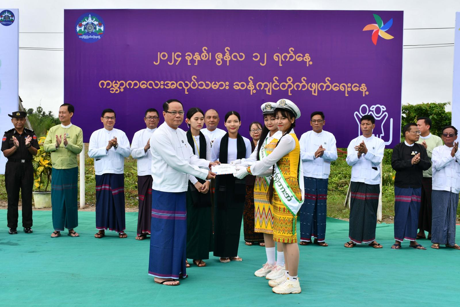 ဦးစွာ ကရင်ပြည်နယ် ကလေးအလုပ်သမားပပျောက်ရေးဆိုင်ရာကော်မတီနာယက ပြည်နယ်ဝန်ကြီးချုပ်ဦးစောမြင့်ဦး၊ ပြည်နယ်တရားလွှတ်တော်တရားသူကြီးချုပ် ဒေါ်ခင်ဆွေထွန်းနှင့် ပြည်နယ်အစိုးရအဖွဲ့ဝင်များက အမှတ်(၄)အခြေခံပညာအထက်တန်းကျောင်းဘင်ခရာအဖွဲ့နှင့် ပန်းပွားအဖွဲ့တို့၏ တီးခတ်ဖျော်ဖြေတင်ဆက်မှုကို ကြည့်ရှုအားပေးကြပြီး ကမ္ဘာ့ကလေးအလုပ်သမားဆန့်ကျင်တိုက်ဖျက်ရေးနေ့ အထိမ်းအမှတ် မြေစိုက်ပိုစတာကို စိုက်ထူပြီး အမွှေးနံ့သာရည်များ ပက်ဖြန်းပေးကြသည်။