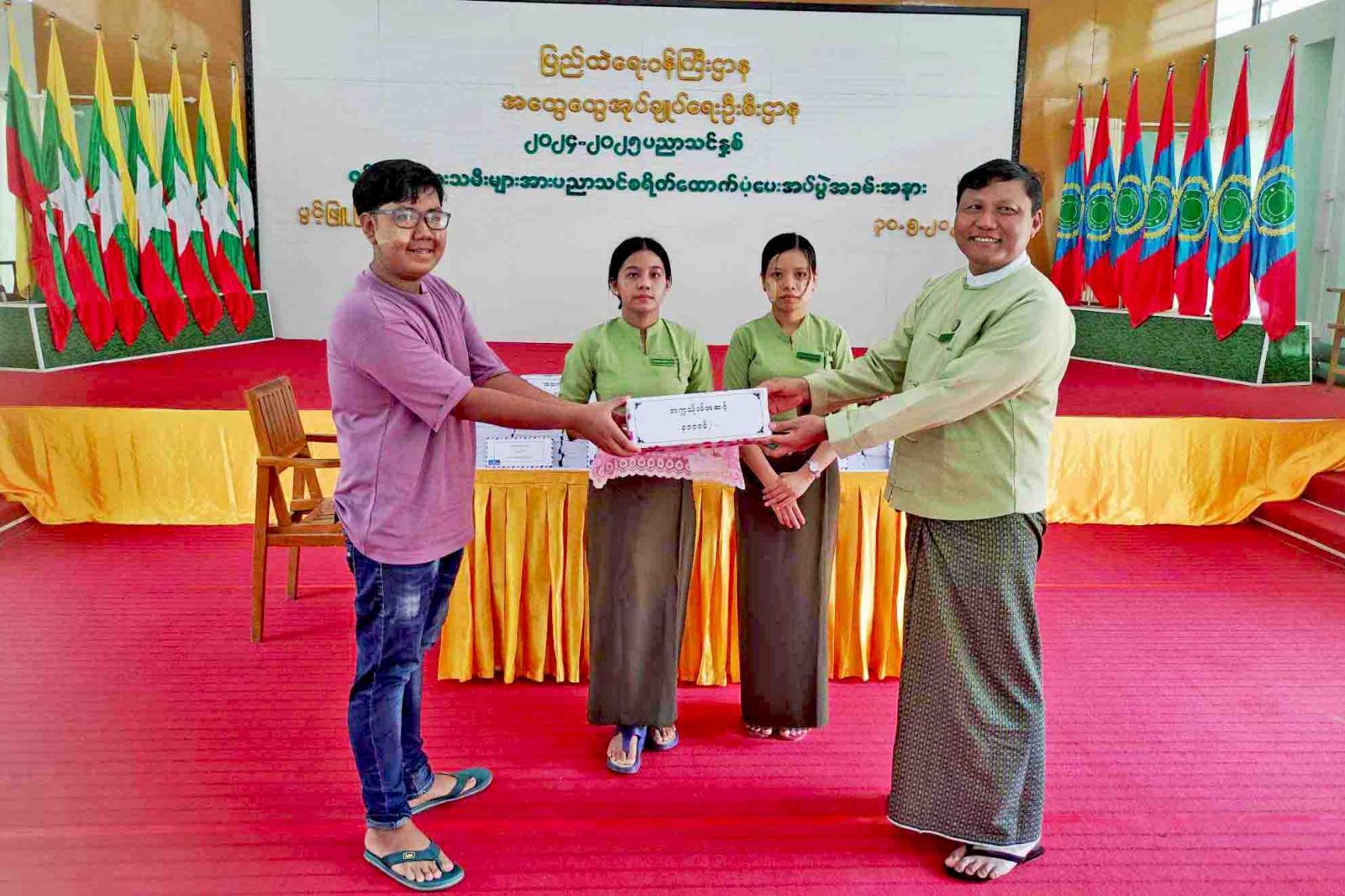 အဆိုပါ ဝန်ထမ်းသားသမီးများအတွက် ပညာသင်စရိတ်ထောက်ပံ့ကြေးငွေများပေးအပ်ရာတွင် မြို့နယ်အထွေထွေအုပ်ချုပ်ရေးဦးစီးဌာန မြို့နယ်အုပ်ချုပ်ရေးမှူး ဦးအောင်မြတ်ခိုင်က ပညာသင်စရိတ် ထောက်ပံ့ကြေးငွေပေးအပ်ရခြင်းနှင့်စပ်လျဉ်းပြီး ရှင်းလင်းဆွေးနွေးပြောကြားပြီး ဌာနရှိဝန်ထမ်းများ၏ သားသမီး ကျောင်းသား ကျောင်းသူ ၄၀ ဦးအား မူလတန်းအဆင့် ကျောင်းသား ကျောင်းသူတစ်ဦးလျှင် ကျောင်းသုံးစာရေးကိရိယာပစ္စည်းများနှင့် ထောက်ပံ့ငွေကျပ် ၁၀၀၀၀၊ အလယ်တန်းအဆင့် ကျောင်းသား ကျောင်းသူတစ်ဦးလျှင် ကျောင်းသုံးစာရေးကိရိယာပစ္စည်းများနှင့် ထောက်ပံ့ငွေကျပ် ၁၂၀၀၀၊ အထက်တန်းအဆင့် ကျောင်းသား ကျောင်းသူတစ်ဦးလျှင် ကျောင်းသုံးစာရေးကိရိယာပစ္စည်းများနှင့် ထောက်ပံ့ငွေကျပ် ၁၄၀၀၀၊ တက္ကသိုလ်ဝင်တန်းအဆင့် ကျောင်းသား ကျောင်းသူတစ်ဦးလျှင် ထောက်ပံ့ငွေကျပ် ၃၀၀၀၀ နှုန်းဖြင့် စုစုပေါင်းထောက်ပံ့ငွေကျပ် ၈၄၄၀၀၀ အား ကျောင်းသား ကျောင်းသူများထံ အသီးသီးထောက်ပံ့ပေးအပ်ခဲ့ပြီး ပညာဆည်းပူးလေ့လာသင်ကြားရာတွင် လိမ္မာရေးခြားရှိပြီး ထူးချွန်ထက်မြက်သူများဖြစ်အောင် ကြိုးစားသင်ယူကြရန် ဆွေးနွေးမှာကြားသည်။