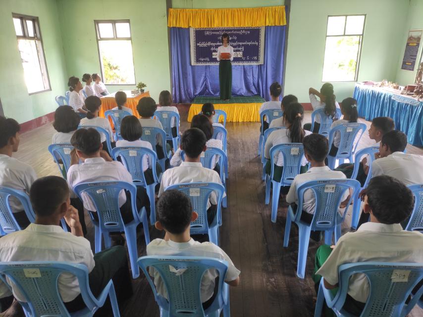 ရှေးဦးစွာ မြို့နယ်ဦးစီးအရာရှိဒေါ်အေးအေးသီက မူးယစ်ဆေးဝါးတိုက်ဖျက်ရေးနေ့အထိမ်းအမှတ် အသိပညာပေးဟောပြောရာတွင် မူးယစ်ဆေးဝါးတိုက်ဖျက်ရေးနေ့ကို မြန်မာနိုင်ငံအပါအဝင် ကမ္ဘာ့နိုင်ငံအသီးသီးတွင် ဇွန်လ ၂၆ ရက်နေ့ကျရောက်တိုင်း မူးယစ်ဆေးဝါးတိုက်ဖျက်ရေးနေ့အခမ်းအနားများကျင်းပပြုလုပ်လျက်ရှိကြောင်း၊ မူးယစ်ဆေးဝါးအန္တရာယ်သည်အလွန်ကြောက်စရာကောင်းပြီး လူအများကိုဒုက္ခပေးသည့်မူးယစ်ဆေးဝါးကို ကျောင်းသားကျောင်းသူများမှ အသုံးမပြုကြစေရေးနှင့် မူးယစ်ဆေးဝါးတိုက်ဖျက်ရေး လုပ်ငန်းများတွင်ပူးပေါင်းပါဝင်ကြစေရေးဆွေးနွေးပြောကြားသည်။