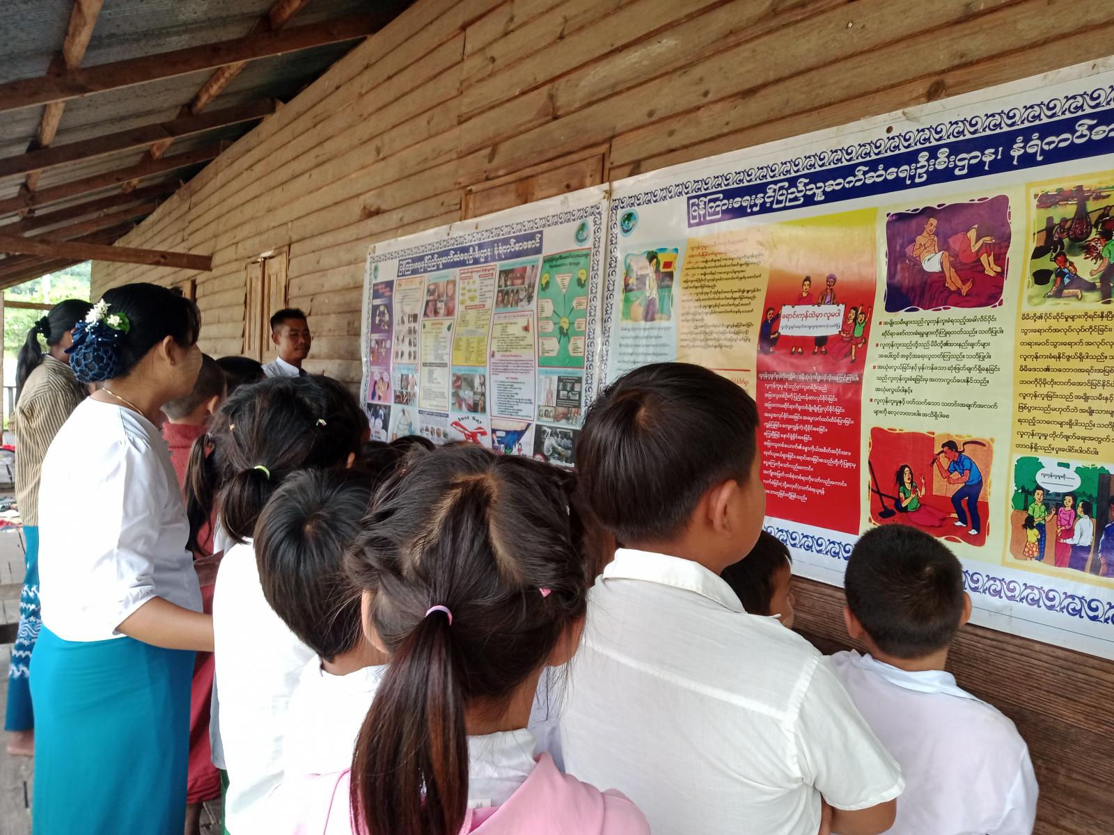 ထို့နောက် ကျောင်းသား၊ ကျောင်းသူများအား ပုံပြင်နှင့် ကဗျာများ၊ အခြားအသိပညာပေးစာအုပ်များဖြင့် နယ်လှည့်စာကြည့်တိုက်ကွင်းဆင်းဆောင်ရွက်ပေးကာ လူကုန်ကူးမှုအန္တရာယ် အသိပညာပေးနံရံကပ်စာစောင်များနှင့်၊ မူးယစ်ဆေးဝါးအမျိုးအစားနှင့် ဆိုးကျိုးအန္တရာယ်များအကြောင်းကို ချိတ်ဆွဲပြသခဲ့ကြောင်း သိရသည်။