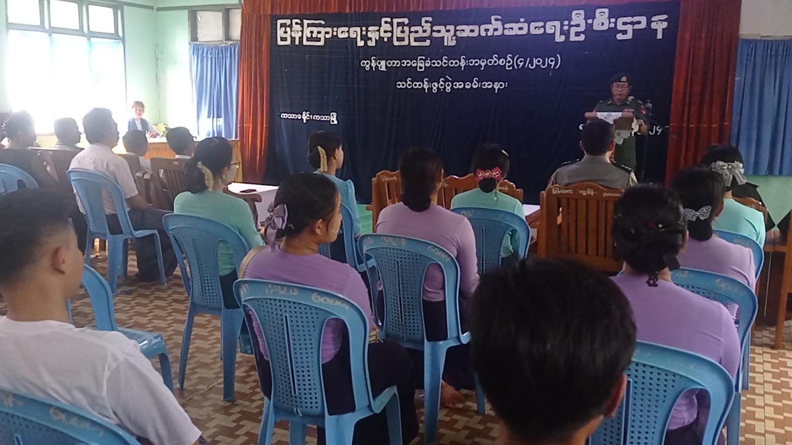 အခမ်းအနားတွင် ခရိုင်စီမံအုပ်ချုပ်ရေးအဖွဲ့ခေတ္တဥက္ကဋ္ဌ ဒုတိယဗိုလ်မှူးကြီး ရဲဝင်းလွင်က အဆိုပါ ကွန်ပျူတာသင်တန်းသည် လူငယ်လူရွယ်များ အချိန်ကိုအကျိုးရှိရှိအသုံးချတတ်စေရန်၊ လူ့စွမ်းအားအရင်းအမြစ်ဖွံ့ဖြိုးတိုးတက်စေရန်၊ အလုပ်အကိုင်အခွင့်အလမ်းများရရှိစေရန်၊ နည်းပညာနှင့် အကျွမ်းတဝင်ဖြစ်စေရန်၊ ယနေ့တိုးတက်နေသောခေတ်တွင် လူငယ်တိုင်းဟာအနည်းဆုံး ကွန်ပျူတာပညာကို တတ်မြောက်ထားရန်၊ ကွန်ပျူတာပညာရပ်ကို စနစ်တကျလေ့လာနိုင်စေရန်နှင့် ကျွမ်းကျင်တတ်မြောက်စေရန် ရည်ရွယ်၍ စစ်ကိုင်းတိုင်းဒေသကြီးအစိုးရအဖွဲ့၏ ပံ့ပိုးကူညီမှုဖြင့် ၂၀၂၃ ခုနှစ်မှ စတင်ဖွင့်လှစ်ခဲ့ခြင်းဖြစ်ကြောင်း၊ ကွန်ပျူတာအခြေခံသင်တန်းအပတ်စဉ်(၄/၂၀၂၄)ကို တက်ရောက်လာကြသည့် သင်တန်းသားများအနေဖြင့် သေချာစွာ သင်ယူကြရန်မှာကြားခဲ့သည်။ ထို့နောက် ကွန်ပျူတာအခြေခံသင်တန်း(၄/၂၀၂၄)တွင် သင်ကြားသွားမည့် ဘာသာရပ်များနှင့်ပတ်သက်၍ သင်တန်းနည်းပြဆရာ ဦးသျှားညိုက ရှင်းလင်းပြောကြားသည်။
