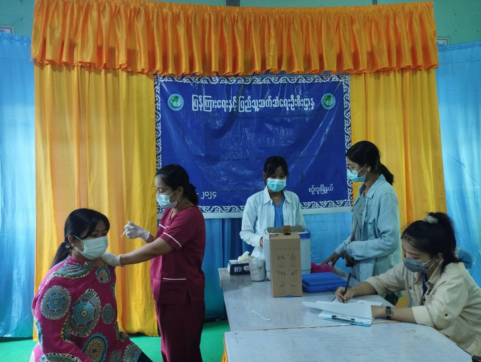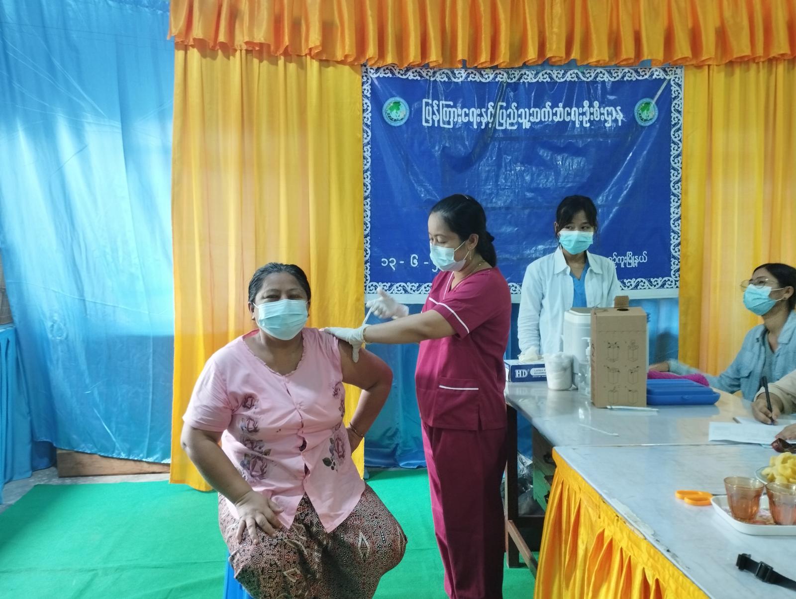 မန္တလေးတိုင်းဒေသကြီး၊ သပိတ်ကျင်းခရိုင်၊ စဥ့်ကူးမြို့နယ်၌ မြို့နယ်အဆင့် ဌာနဆိုင်ရာဝန်ထမ်းများနှင့် အသက်(၁၈)နှစ်နှင့်အထက် ဝန်ထမ်းမိသားစုဝင်များအား ကိုဗစ်-၁၉ရောဂါ ထပ်ဆောင်းကာကွယ်ဆေး (Booster Dose) ထိုးနှံပေးခြင်းလုပ်ငန်းကို မြို့နယ်ကျန်းမာရေးဦးစီးဌာနမှ ယမန်နေ့နံနက် (၁၀) နာရီမှစ၍ စာရင်းပေးသွင်းထားသည့် ဌာနဆိုင်ရာအသီးသီးသို့ အရောက်သွား၍ ကိုဗစ်-၁၉ရောဂါ ထပ်ဆောင်းကာကွယ်ဆေး (Booster Dose) ထိုးနှံပေးလျက်ရှိသည်။