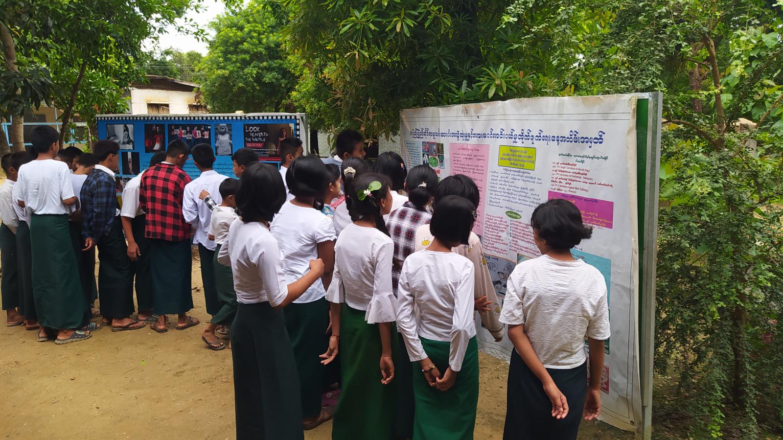 ဆက်လက်၍ ရုပ်ပုံပါစာအုပ်ဖြင့် ပူးပေါင်းမှုအကျိုးရလာဒ်ကို ကျောင်းသား၊ ကျောင်းသူများနှင့်အတူ ပုံဖော်သရုပ်ပြသခြင်း၊ မြို့နယ်ပြည်သူ့စာကြည့်တိုက်မှူး ဒုတိယဦးစီးမှူး ဒေါ်ဝင်းမြသန်းက အသိပညာပေး စက္ကူပြဇာတ်ပြသခြင်း၊ ရွေ့လျားစာကြည့်တိုက်ယာဉ်ပေါ်မှ အသိပညာပေးစာအုပ်များကို ဖတ်ရှုလေ့လာစေခြင်း၊ မူးယစ်ဆေးဝါးအန္တရာယ်နှင့် လူကုန်ကူးမှု အသိပညာပေး နံရံကပ်စာစောင်များ ပြသပေးခြင်းများ ဆောင်ရွက်ခဲ့ကြပြီး ကျောင်းအုပ်ဆရာကြီး ဦးထွန်းထွန်းက ကျေးဇူးတင်စကားပြန်လည် ပြောကြားခဲ့ကြောင်း သိရသည်။