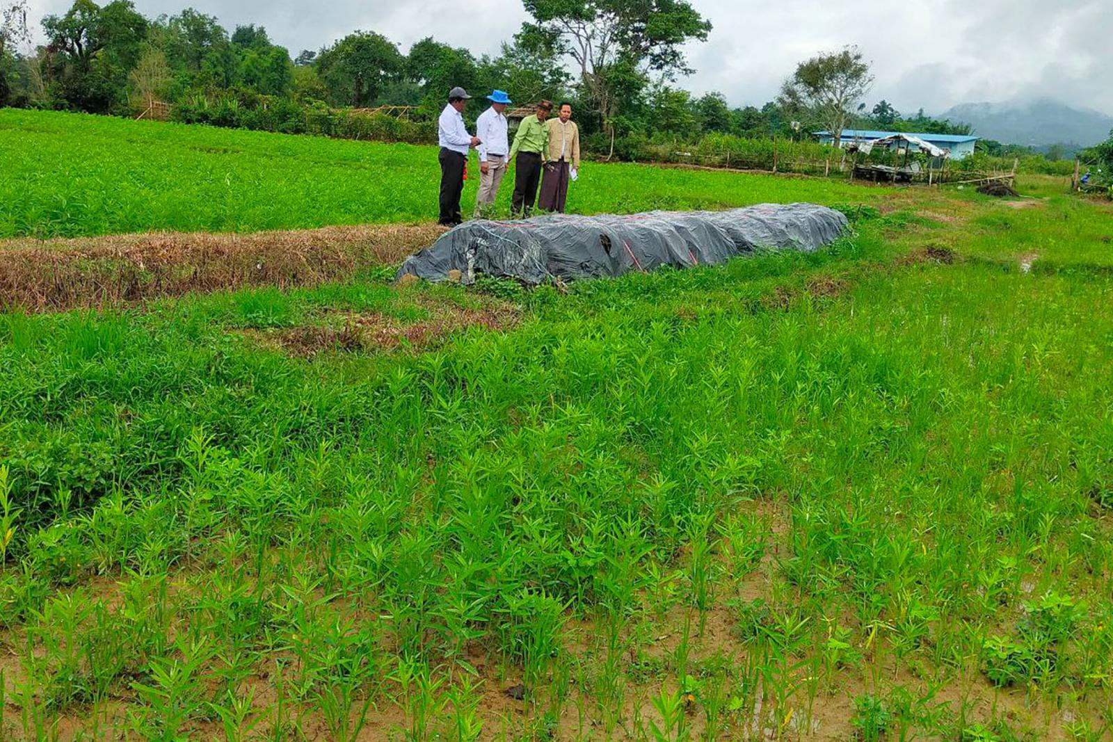 ထိုသို့ ကြည့်ရှုစစ်ဆေးရာတွင် ခရိုင်စီမံအုပ်ချုပ်ရေးအဖွဲ့ဥက္ကဋ္ဌ ခရိုင်အုပ်ချုပ်ရေးမှူး ဦးထွန်းထွန်းနိုင်သည် စိုက်ပျိုးရေး၊ မွေးမြူရေးနှင့် ဆည်မြောင်းဝန်ကြီးဌာနဝန်ကြီးဌာနကိုယ်စားပြု ခရိုင်ဦးစီးမှူး ဦးအောင်နိုင်ဝင်း၊ စိုက်ပျိုးရေးဦးစီးဌာန မြို့နယ်ဦးစီးမှူး ဦးကျော်ကျော်မိုး၊ ကြေးတိုင်နှင့်မြေစာရင်းဦးစီးဌာန မြို့နယ်ဦးစီးမှူး ဦးနိုင်မင်းတို့နှင့်အတူ သစ်စိမ်းမြေဩဇာအဖြစ် ပိုက်ဆံလျှော်စိုက်ပျိုးအောင်မြင်ဖြစ်ထွန်းနေမှုအား ကွင်းဆင်းစစ်ဆေးပြီး ခရိုင်စီမံအုပ်ချုပ်ရေးအဖွဲ့ဥက္ကဋ္ဌ ခရိုင်အုပ်ချုပ်ရေးမှူးက လိုအပ်သည်များ ညှိနှိုင်းဆောင်ရွက်ပေးခဲ့ကြောင်း သိရသည်။