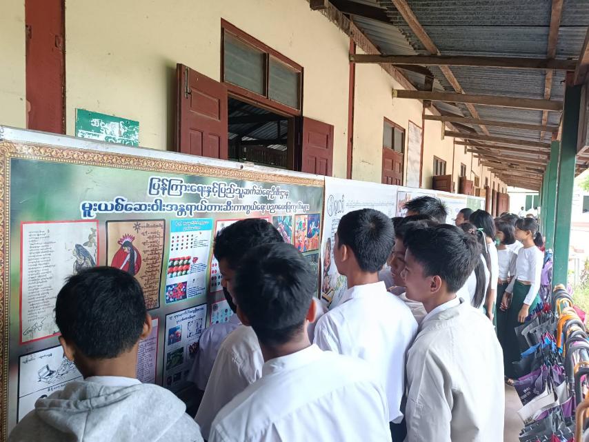 ထို့နောက် စာဖတ်ရှိန်မြှင့်တင်ရေးလှုပ်ရှားမှုအဖြစ် ပြသထားသည့် မူးယစ်ဆေးဝါးအသိပညာပေး နံရံကပ်စာစောင်တွင် မူးယစ်ဆေးဝါးဆိုသည်မှာ မူးယစ်ဆေးဝါးသုံးစွဲခြင်းကြောင့် ဖြစ်ပေါ်လာ သည့် လက္ခဏာများနှင့် ဆိုးကျိုးများ၊ လူငယ်အနာဂတ်လှပဖို့ မူးယစ်ဆေးဝါးရှောင်ရှားစို့ စသည့် အကြောင်းအရာများကို ပြသထားရာ ကျောင်းသား၊ ကျောင်းသူများမှ စိတ်ပါဝင်စားစွာ ကြည့်ရှုလေ့လာခဲ့ကြကြောင်း သိရသည်။
