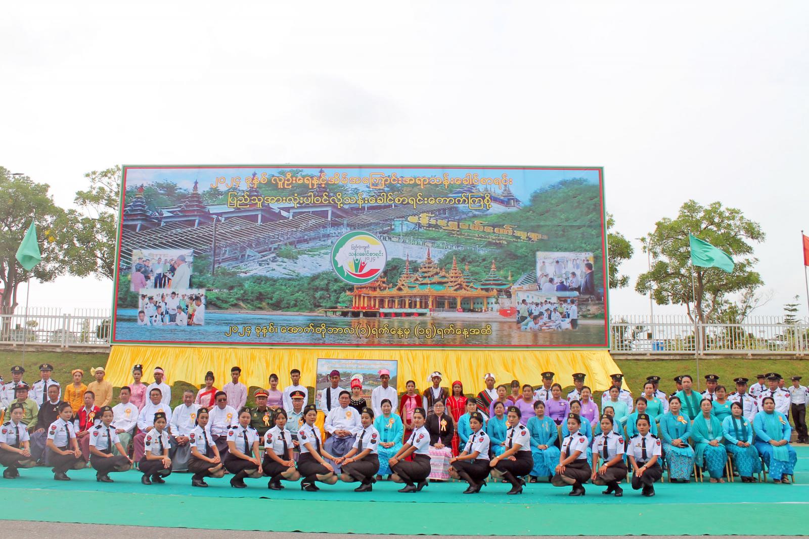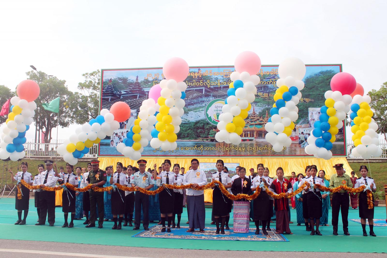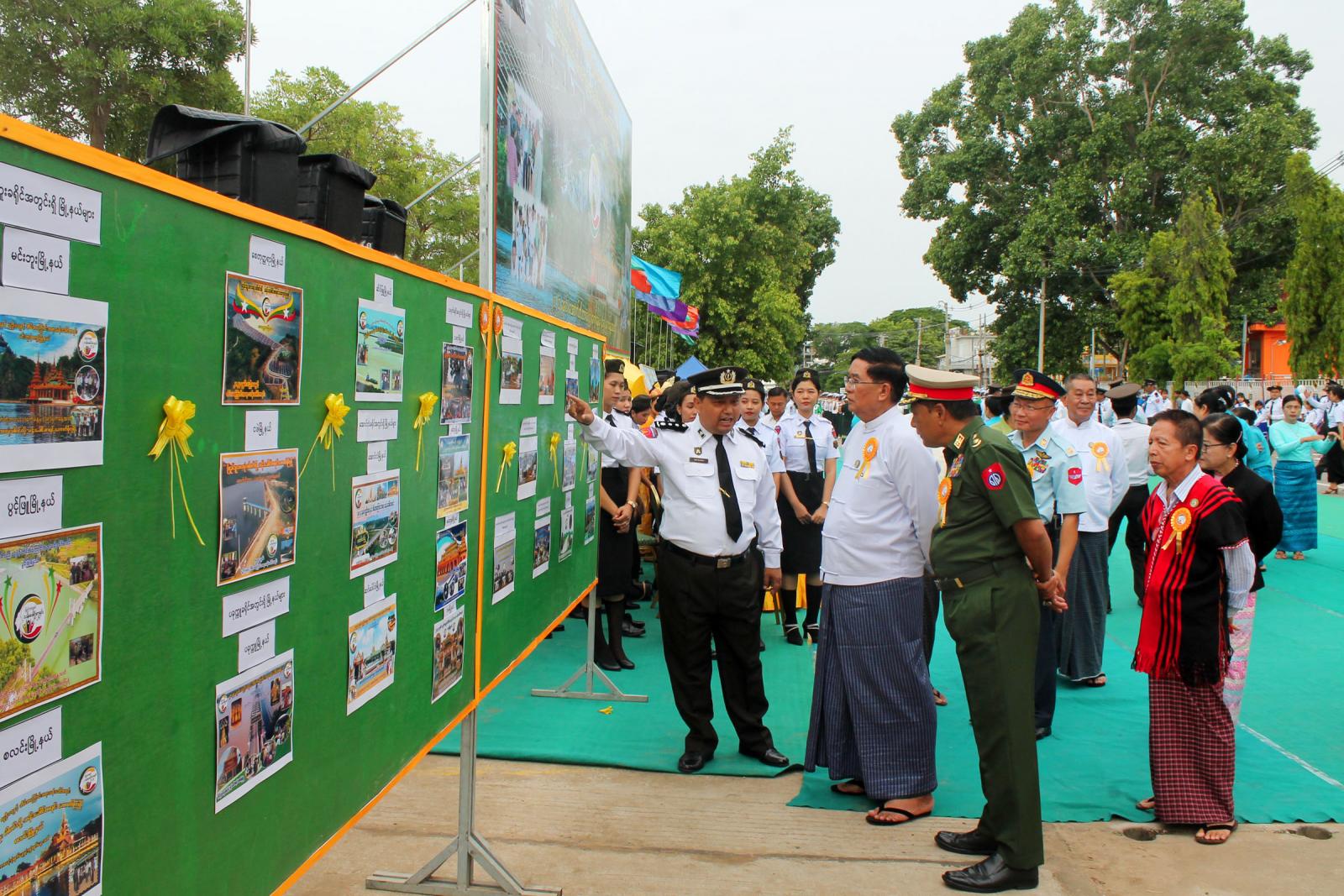 ထို့နောက် တိုင်းဒေသကြီးအစိုးရအဖွဲ့ဝန်ကြီးချုပ် ဦးတင့်လွင်၊ အနောက်ပိုင်းလေတပ်ကွပ်ကွဲမှု ဌာနချုပ်မှူး ဗိုလ်မှူးချုပ် သိန်းထွန်းဦး၊ တိုင်းဒေသကြီးတရားသူကြီးချုပ် ဒေါ်မိမိမော်၊ တိုင်းဒေသကြီးအစိုးရအဖွဲ့ လုံခြုံရေးနှင့် နယ်စပ်ရေးရာဝန်ကြီး ဗိုလ်မှူးကြီးမိုးမင်းသိန်း၊ တိုင်းရင်းသားရေးဝန်ကြီး ဦးထွန်းခင်၊ တိုင်းဒေသကြီးအစိုးရအဖွဲ့ အတွင်းရေးမှူး ဦးမောင်မောင်ဆန်း၊ တိုင်းဒေသကြီး လူဝင်မှု ကြီးကြပ်ရေးနှင့်ပြည်သူ့အင်အားဝန်ကြီးဌာန တိုင်းဒေသကြီးဦးစီးမှူး ဦးဝင်းရဲထွန်းတို့က လူထုအသိပညာပေးလှုံဆော်ရေး ပိုစတာ(Billboard)အား ဖဲကြိုးဖြတ် ဖွင့်လှစ်ပေးခဲ့သည်။