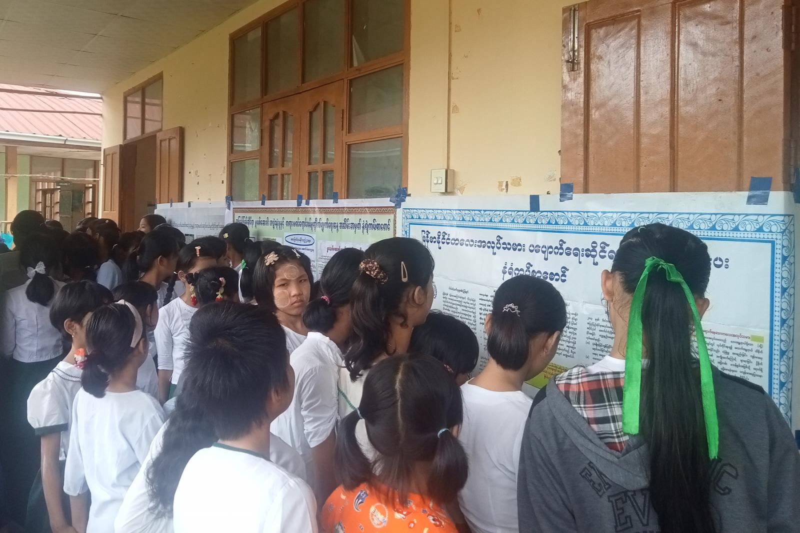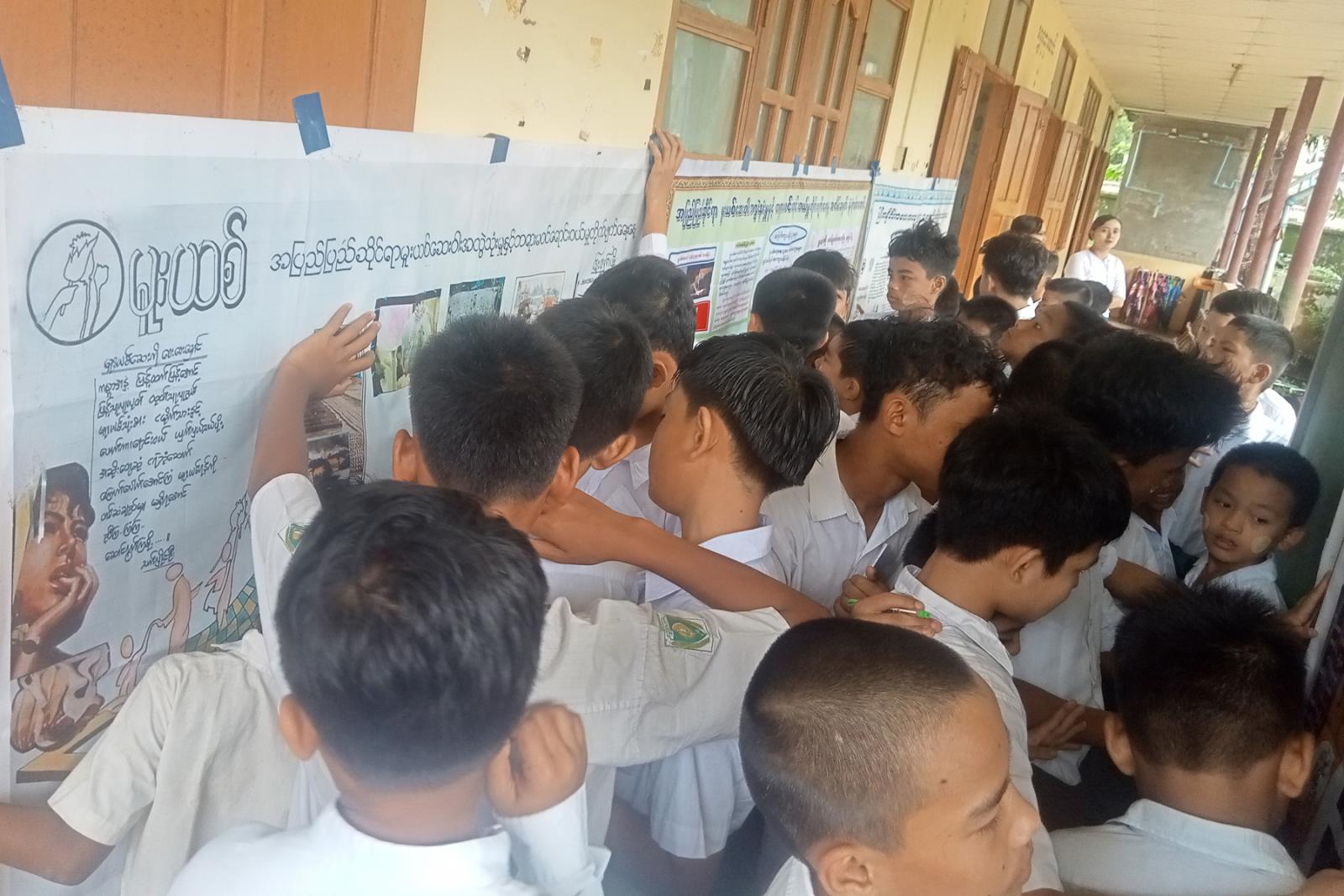 အဆိုပါ အသိပညာပေးဟောပြောပွဲတွင် ကျောင်းအုပ်ဆရာမကြီးက အဖွင့်အမှာစကားပြောကြားကာ မြို့နယ်(ပြန်/ဆက်)ဦးစီးဌာန တာဝန်ရှိသူများမှ၊ စာဖတ်ခြင်း၏ အကျိုးကျေးဇူးများနှင့် စာအုပ်စာပေမှရရှိမည့် အသိပညာဗဟုသုတများအကြောင်း ပညာပေးဟောပြောခဲ့ပြီး ကျောင်းသား/သူများ သိလို သည်များကို ပြန်လည်ဖြေကြားပေးခြင်းနှင့် မူးယစ်ဆေးဝါးအန္တရာယ် ကြိုတင်ကာကွယ်ရေး အသိပညာပေး၊ စာဖတ်ရှိန်မြှင့်တင်ရေး နံရံကပ်စာစောင်၊ ကလေးစစ်သား လျော့နည်းပပျောက်ရေး အသိပညာပေးနံရံကပ်စာစောင်နှင့် ကလေးအလုပ်သမား လျော့နည်းပပျောက်ရေး စသည့် နံရံကပ်စာစောင်များပြသခဲ့ကြောင်း သိရသည်။