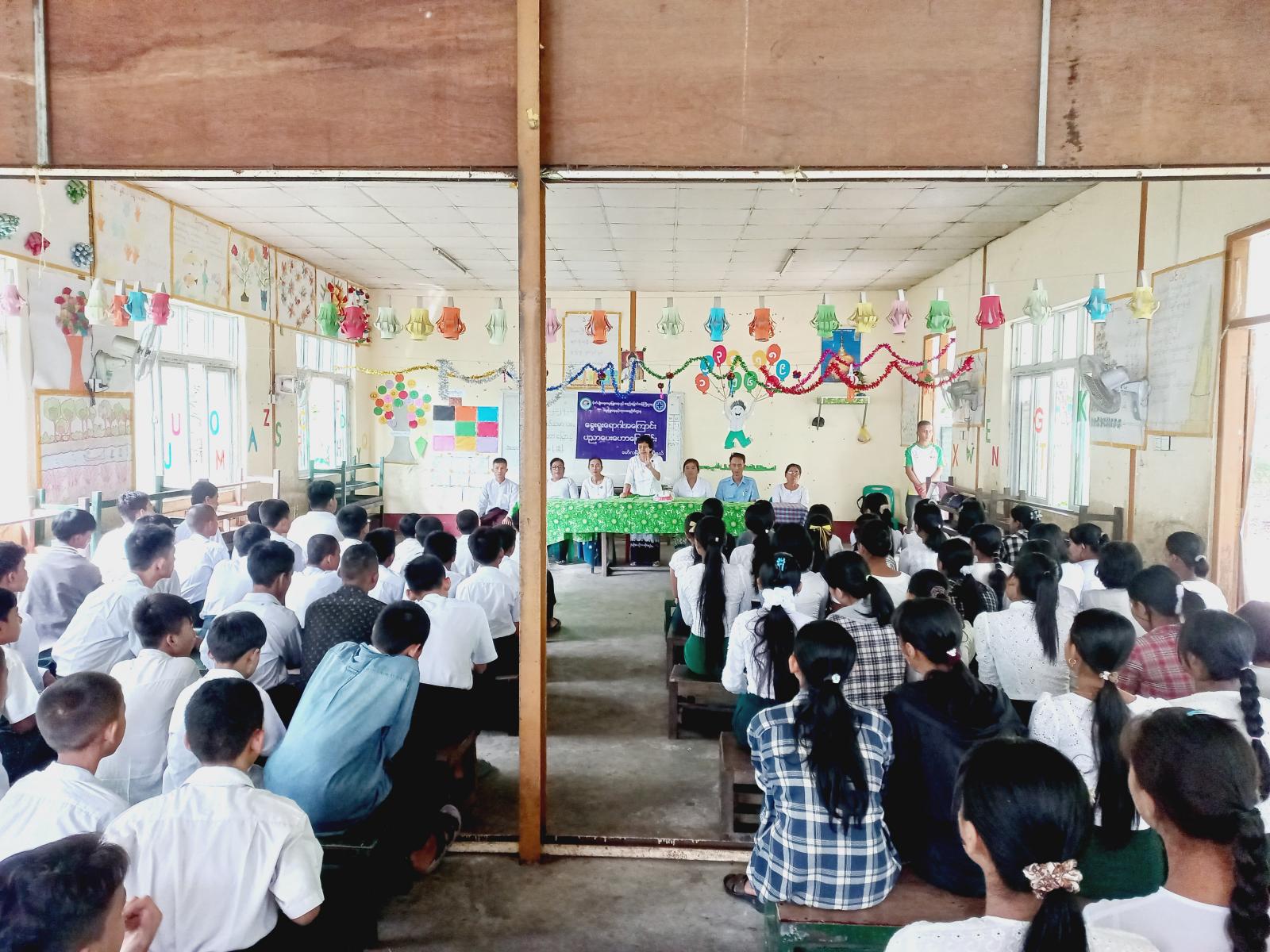 အဆိုပါ အသိပညာပေးဟောပြောပွဲတွင် အားကစားနှင့်လူငယ်ရေးရာဝန်ကြီးဌာန၊ မြို့နယ်အားကစားနှင့်ကာယပညာဦးစီးဌာန၊ ဦးစီးအရာရှိ ဒေါ်နှင်းမိုးလှိုင်က အားကစားနှင့် လူငယ်ရေးရာသိ ကောင်းစရာများအကြောင်း၊ ပြန်ကြားရေးနှင့်ပြည်သူ့ဆက်ဆံရေးဦးစီးဌာန၊ဦးစီးအရာရှိ ဒေါ်နုနုအေးက စာဖတ်ရှိန်မြှင့်တင်ရေး သိကောင်းစရာများအကြောင်း၊ မြို့နယ်စားသုံးသူရေးရာ ဦးစီးဌာန၊ ဦးစီးမှူး ဦးမင်းဇော်လတ်က စားသုံးသူကာကွယ်ရေးနှင့်စားသုံးသူအန္တရာယ် သိကောင်းစရာများအကြောင်း၊ မြို့နယ်မွေးမြူရေးနှင့် ကုသရေးဦးစီးဌာနမှ လက်ထောက်ညွှန်ကြားရေးမှူး ဒေါ်ဖြူဖြူဝင်းက ခွေးရူးရောဂါကာကွယ်ရေးအကြောင်း၊ ခွေးရူးရောဂါသည် ဗိုင်းရပ်ပိုးကြောင့် ဖြစ်သော အသက်ဆုံးရှုံးစေသည့် ရောဂါဖြစ်ကြောင်း၊ ခွေးရူးရောဂါကူးစက်ခံရသည့် နည်းလမ်းများ၊ ခွေးရူးပြန်ရောဂါလက္ခဏာများအကြောင်း၊ ခွေးကိုက်ခံရပါက ခွေးရူးရောဂါမဖြစ်အောင် ကာကွယ်ရန် နည်းလမ်းများအကြောင်း၊ ဘေးအန္တရာယ်စီမံခန့်ခွဲရေးဦးစီးဌာန ဒုတိယဦးစီးမှူး ဦးထိုက်ထိုက်မှ သဘာဝဘေးအန္တရာယ် ကြိုတင်ကာကွယ်ရေးအကြောင်းများ ရှင်းလင်းဆွေးနွေးခဲ့ကြပြီး မြို့နယ်အားကစားနှင့် ကာယပညာဦးစီးဌာနမှ ကျောင်းသား/ကျောင်းသူများအတွက် အားကစား လက်ဆောင်ပစ္စည်းများ ပေးအပ်ခဲ့ကြောင်း သိရသည်။