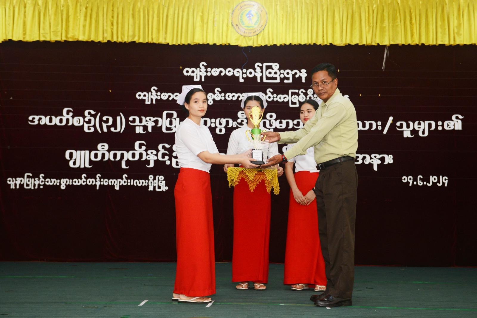 ထို့နောက် သူနာပြု-သားဖွားဒီပလိုမာ (၃) နှစ်သင်တန်း၊ အပတ်စဉ် (၃၂) သစ်လွင်သင်တန်းသား (၁) ဦးနှင့် သင်တန်းသူ (၆၀) ဦး စုစုပေါင်း (၆၁) ဦးတို့အား တာဝန်ရှိသူအသီးသီးက ဂျူတီကုတ်နှင့်ဦးဆောင်းများကို အပ်နှင်းခဲ့ကြောင်း သိရသည်။