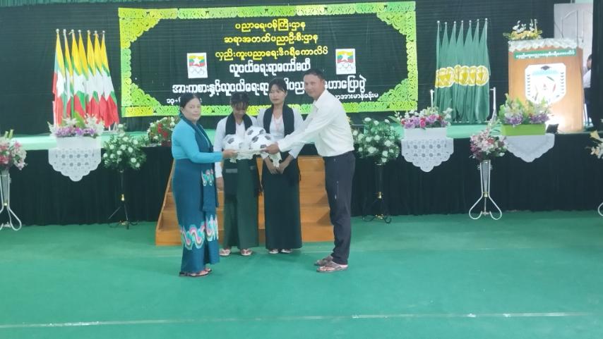 ဆက်လက်၍ အားကစားနှင့်ကာယပညာဦးစီးဌာနမှ မြို့နယ်ဦးစီးမှူး ဦးစိုးသိန်းက အားကစားပစ္စည်းများကို လှည်းကူးပညာရေးဒီဂရီကောလိပ်အတွက် ပေးအပ်ရာ ဒုတိယကျောင်းအုပ်ကြီးက လက်ခံရယူခဲ့သည်။ ထို့နောက် တက်ရောက်လာသူများက မြို့နယ်ပြန်/ဆက်မှ ပြသထားသော နံရံကပ်စာစောင်များ၊ စာအုပ်/စာစောင်များကို စိတ်ပါဝင်စားစွာ ကြည့်ရှုလေ့လာခဲ့ကြသည်။