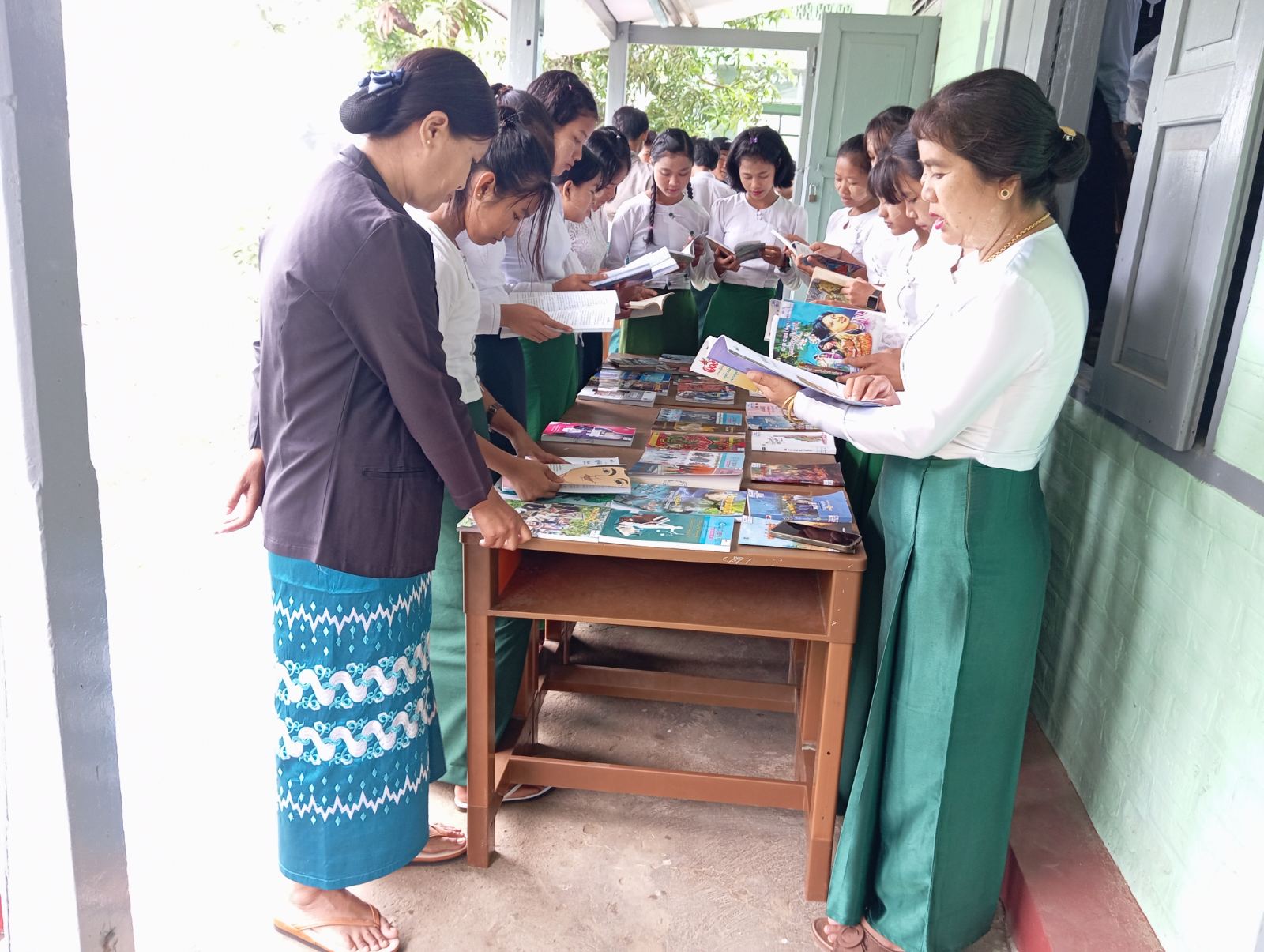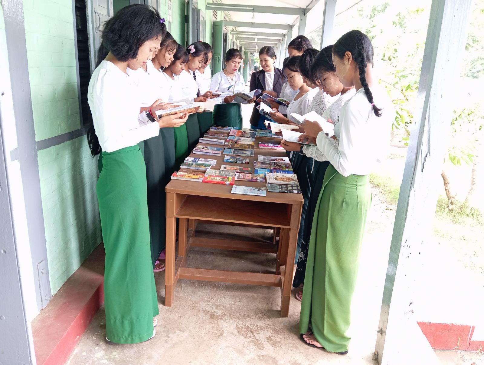 ထို့နောက် ပြန်ကြားရေးနှင့်ပြည်သူ့ဆက်ဆံရေးဦးစီးဌာနမှ ခင်းကျင်းကပြသထားသော သုတ၊ ရသ စာအုပ်စာစောင်များကို အခမ်းအနားသို့ တက်ရောက်လာကြသည့် ကျောင်းသား၊ ကျောင်းသူများက ကြည့်ရှုလေ့လာခဲ့ကြောင်းသိရသည်။