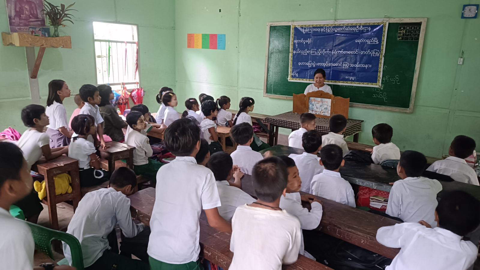 ကျောင်းသား/ကျောင်းသူ လူငယ်များ အကျင့်စာရိတ္တ ကောင်းမွန်စေရေး၊ မျိုးချစ်စိတ်ဓာတ်ရှင်သန်ထက်မြက်စေရန်နှင့် ကျောင်းစာအပြင် ပြင်ပစာပေ ဗဟုသုတများ ကြွယ်ဝစေရန် ပဲခူးတိုင်းဒေသကြီး၊ တောင်ငူခရိုင်၊ ရေတာရှည်မြို့နယ် ပြန်ကြားရေးနှင့် ပြည်သူ့ဆက်ဆံရေးဦးစီးဌာနမှ ယနေ့ နံနက်ပိုင်းက အမှတ် ၄ ရပ်ကွက် အလယ်တန်းကျောင်းခွဲ၌ စာဖတ်ရှိန်မြှင့်တင်ရေးအတွက် ကွင်းဆင်းဆောင်ရွက်သည်။