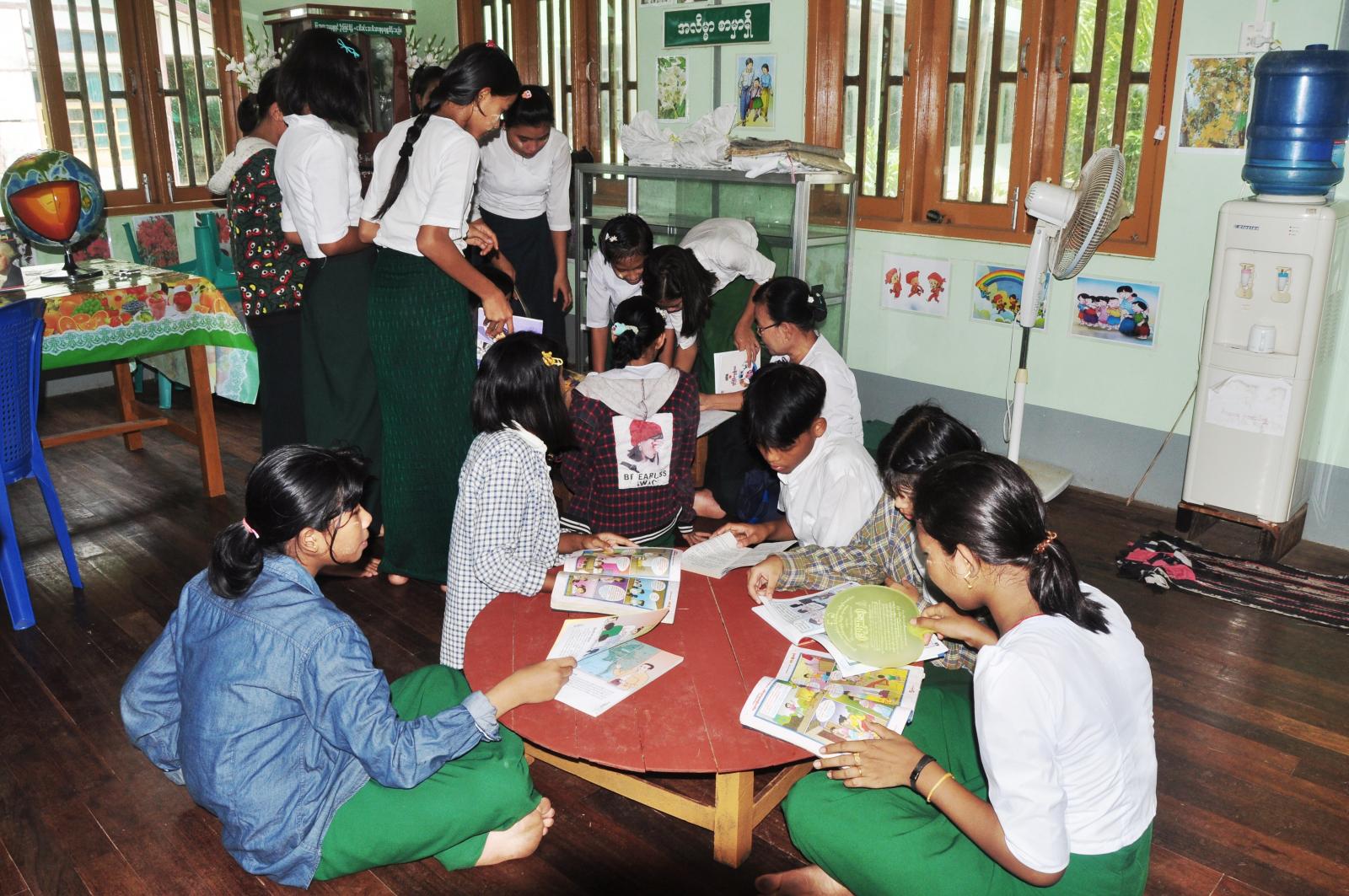 ထို့သို့ ကွင်းဆင်းငှားရမ်းပေးရာတွင် ဆရာ၊ဆရာမများအား သုတစာအုပ်များနှင့် ကျောင်းသား၊ကျောင်းသူများအား ရသစာအုပ်များ၊ ကလေးဖတ်စာအုပ်စာစောင်များ ငှားရမ်းပေးပြီး၊ ကျောင်းသား၊ကျောင်းသူများအား မြို့နယ်ပြန်ကြားရေးနှင့်ပြည်သူ့ဆက်ဆံရေးဦးစီးဌာန ဒုတိယဦးစီးမှူးဒေါ်သီတာဝင်းက စက္ကူပြဇာတ်ဖြင့် ပုံပြင်များ ပြောကြားပေးသည်။