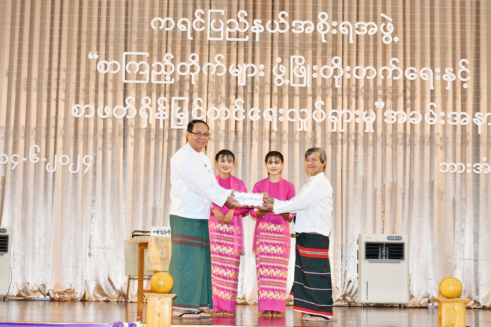ကရင်ပြည်နယ် စာကြည့်တိုက်များ ဖွံ့ဖြိုးတိုးတက်ရေးနှင့် စာဖတ်ရှိန်မြှင့်တင်ရေးလှုပ်ရှားမှု အခမ်းအနားကို ယမန်နေ့ နံနက် (၁၀) နာရီက ဘားအံတက္ကသိုလ် ဘွဲ့နှင်းသဘင်ခန်းမ၌ ကျင်းပသည်။