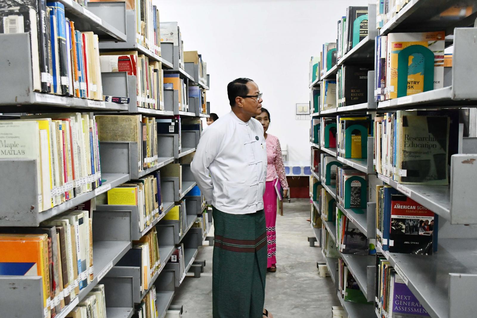 ဆက်လက်၍ ပြည်နယ်ဝန်ကြီးချုပ်နှင့်အဖွဲ့သည် ပညာရပ်စာအုပ်များနှင့်သုတ၊ရသ စာအုပ်ပေါင်း (၂၉၈၉၈) အုပ်ရှိသော ဘားအံတက္ကသိုလ်စာကြည့်တိုက်သို့ သွားရောက်၍ ဧည့်သည်တော် မှတ်တမ်းတွင် မှတ်တမ်းရေးသွင်းပြီး စာအုပ်၊စာစောင်များနှင့် စာဖတ်၊ စာငှားနေမှုအခြေအနေများ၊ ကျောင်းသား၊ ကျောင်းသူများ စာကြည့်တိုက်ကို အသုံးပြုနေမှု အခြေအနေများ၊ ကွန်ပျူတာခန်းနှင့် စာအုပ်စာစောင်များ ခင်းကျင်းထားရှိမှု အခြေအနေများကို လှည့်လည်ကြည့်ရှု အားပေးကာ စာကြည့်တိုက်သို့ ထောက်ပံ့ငွေကျပ် သိန်း (၂၀) ကို ပါမောက္ခချုပ် ဒေါက်တာစိုးစိုးအေးထံ ပေးအပ်ချီးမြှင့်ခဲ့ကြောင်း သတင်းရသည်။