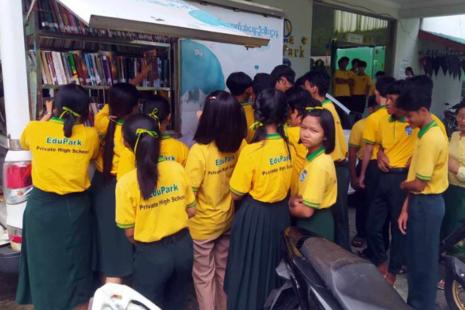ရွေ့လျားစာကြည့်တိုက် Mobile Library Bus တွင် ဝတ္ထု၊ မဂ္ဂဇင်း၊ ရုပ်ပြနှင့်အသိပညာဗဟုသုတများစွာရရှိမည့် သုတ/ရသစာအုပ် စာစောင်များ (၃၅၀)အုပ်ပါရှိပြီး ငှားရမ်းပေးခဲ့သောစာအုပ်များကို (၃)ရက်လျှင် တစ်ကြိမ်လဲလှယ်ပေးသွားမည်ဖြစ်ကြောင်း သိရသည်။
