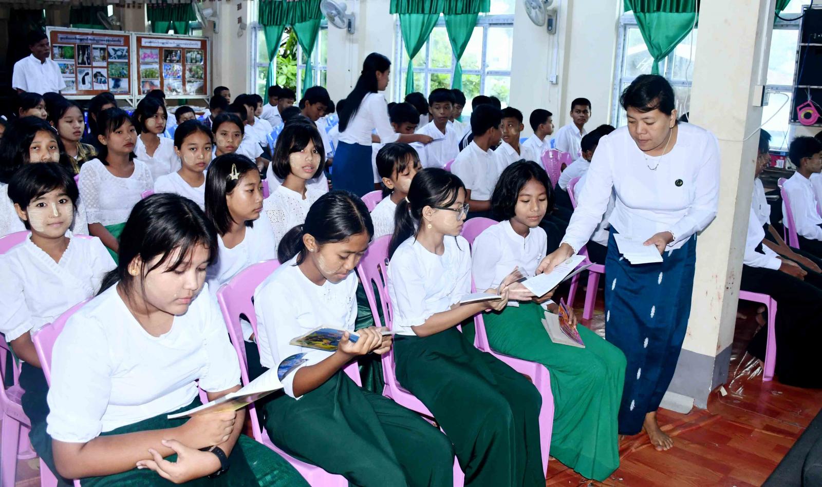 ဆက်လက်၍ စာဖတ်စွမ်းရည်ပြိုင်ပွဲကိုပြုလုပ်ခဲ့ရာ ကျောင်းသား၊ ကျောင်းသူ ၁၀ ဦးမှ မိမိနှစ် သက်ရာစာအုပ်အသီးသီးမှ ခေါင်းစဉ်များဖြင့် ဝင်ရောက်ယှဉ်ပြိုင်ခဲ့ကြပြီး ယင်းသို့ဝင်ရောက်ယှဉ်ပြိုင်သည့် ကျောင်းသား၊ ကျောင်းသူများအား တာဝန်ရှိသူများက အမှတ်တရဂုဏ်ပြုလက်ဆောင်များပေးအပ်ချီးမြှင့်သည်။ ထို့နောက် ကျောင်းသား၊ ကျောင်းသူများသည် ပြန်ကြားရေးနှင့်ပြည်သူ့ဆက်ဆံရေးဦးစီးဌာနမှ ခင်းကျင်းပြသထားသည့် သုတ၊ ရသစာအုပ်စာစောင်များနှင့် မူးယစ်ဆေးဝါးအန္တရာယ် အသိပညာပေးနံရံကပ်ဓာတ်ပုံများအား စိတ်ပါဝင်စားစွာဖြင့် လေ့လာကြည့်ရှုခဲ့ကြကြောင်း သိရသည်။