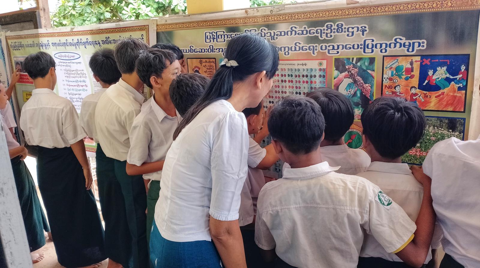 ဆက်လက်၍ ပြန်ကြားရေးနှင့်ပြည်သူ့ဆက်ဆံရေးဦးစီးဌာနမှ ရုပ်ပြ၊ ကာတွန်း၊ သုတ၊ ရသ၊ မဂ္ဂဇင်း၊ ပုံပြင် စသည့် အသိပညာတိုးပွားရေး စာအုပ်စာပေများနှင့် မူးယစ်ဆေးဝါးအန္တရာယ်၊ လူကုန်ကူးမှု တားဆီးကာကွယ်ရေး၊ သဘာဝပတ်ဝန်းကျင်ထိန်းသိမ်းရေး၊ ကလေးအလုပ်သမား ပပျောက်ရေးဆိုင်ရာ အသိပညာပေး နံရံကပ်စာစောင်များတို့ကို ပြသခဲ့ရာ ကျောင်းသား/သူများမှ စိတ်ပါ၀င်စားစွာ ကြည့်ရှုလေ့လာခဲ့ကြောင်း သိရသည်။